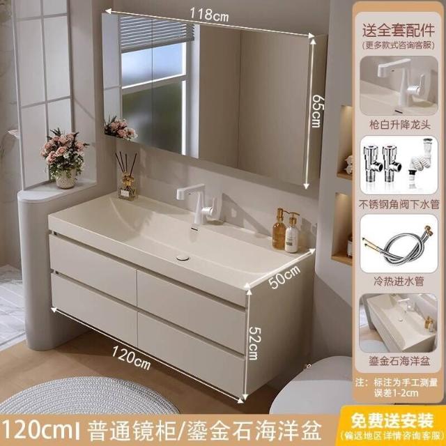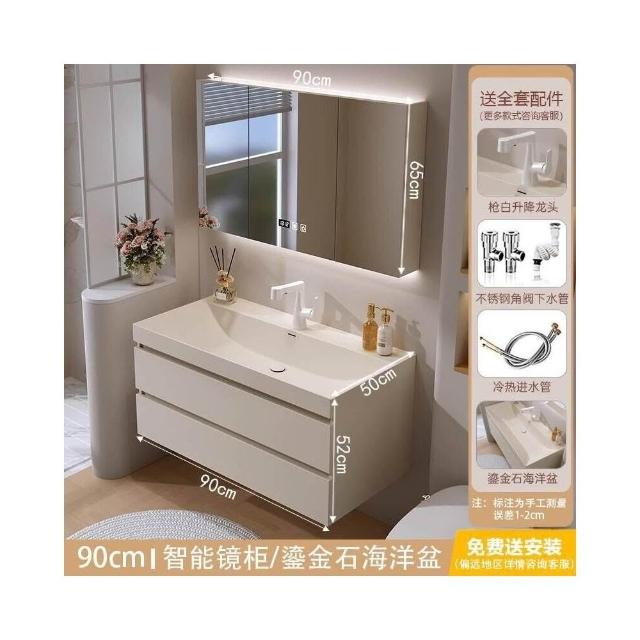 奶油風鎏金石一體盆浴室櫃組合衛生間洗漱臺洗臉盆櫃