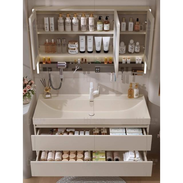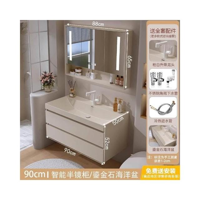奶油風鎏金石一體盆浴室櫃組合衛生間洗漱臺洗臉盆櫃