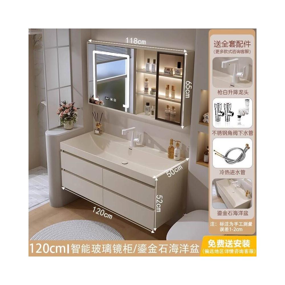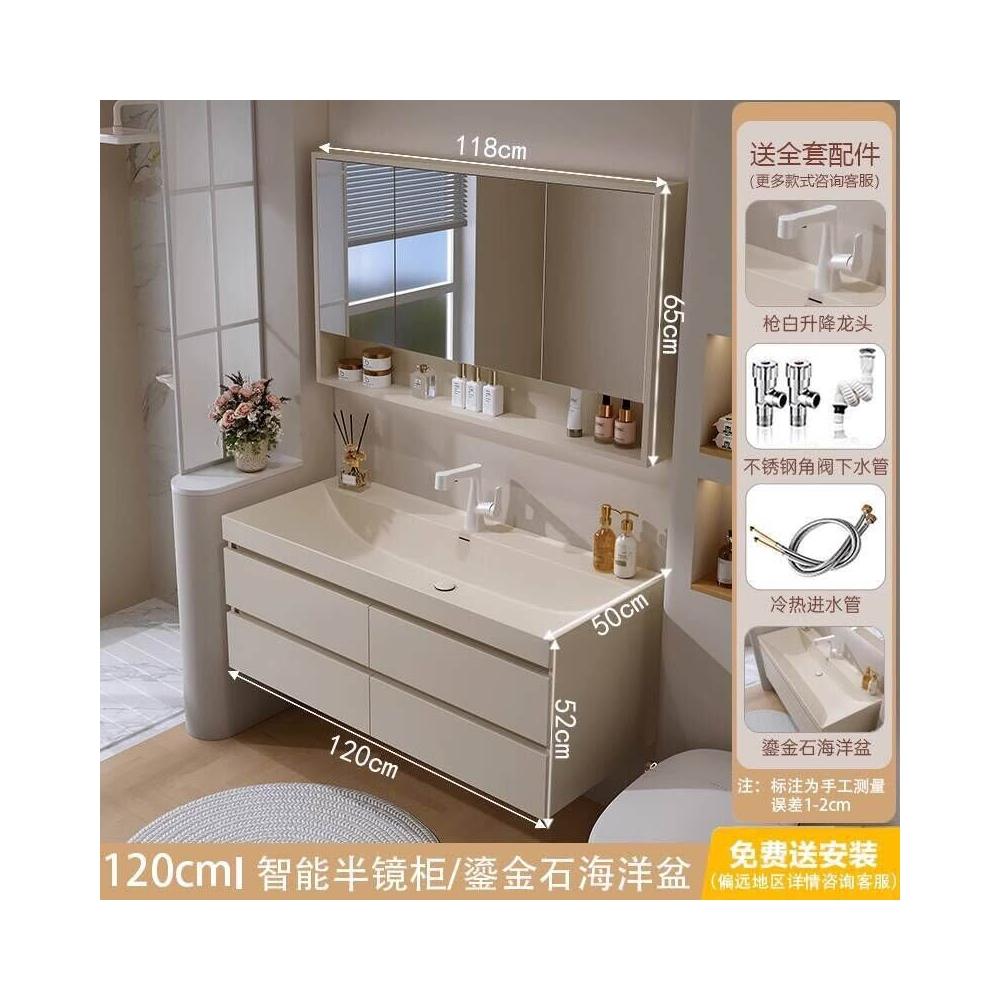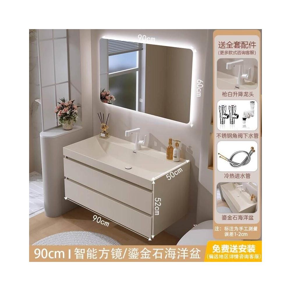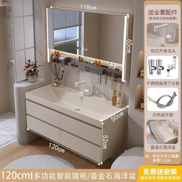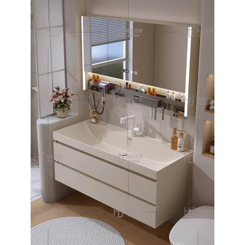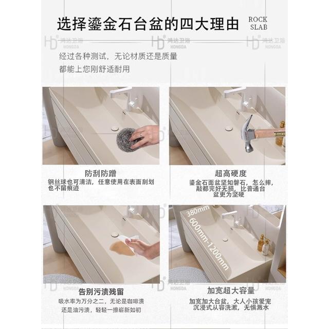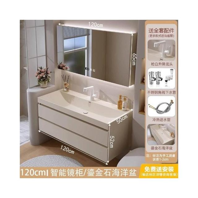 奶油風鎏金石一體盆浴室櫃組合衛生間洗漱臺洗臉盆櫃