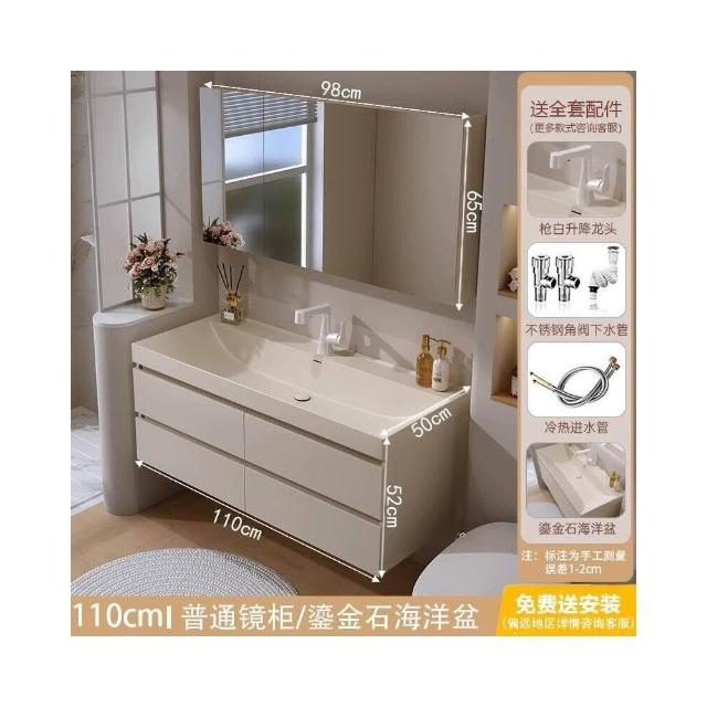 奶油風鎏金石一體盆浴室櫃組合衛生間洗漱臺洗臉盆櫃