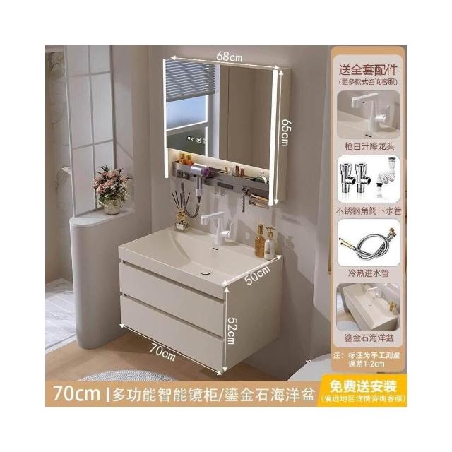 奶油風鎏金石一體盆浴室櫃組合衛生間洗漱臺洗臉盆櫃