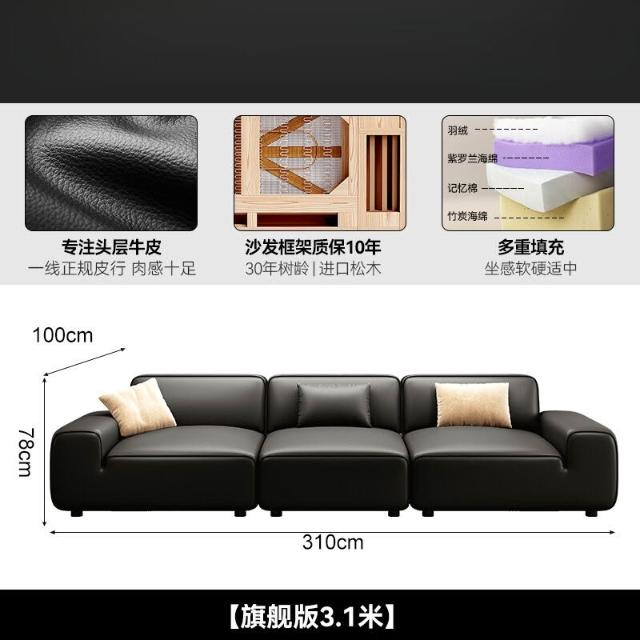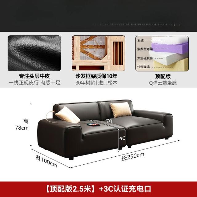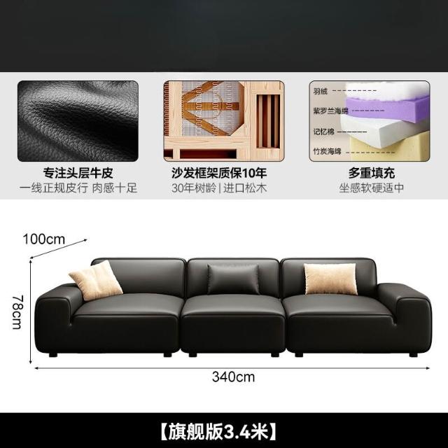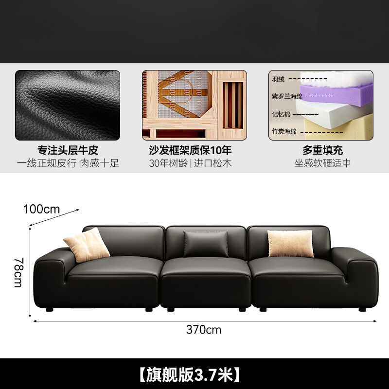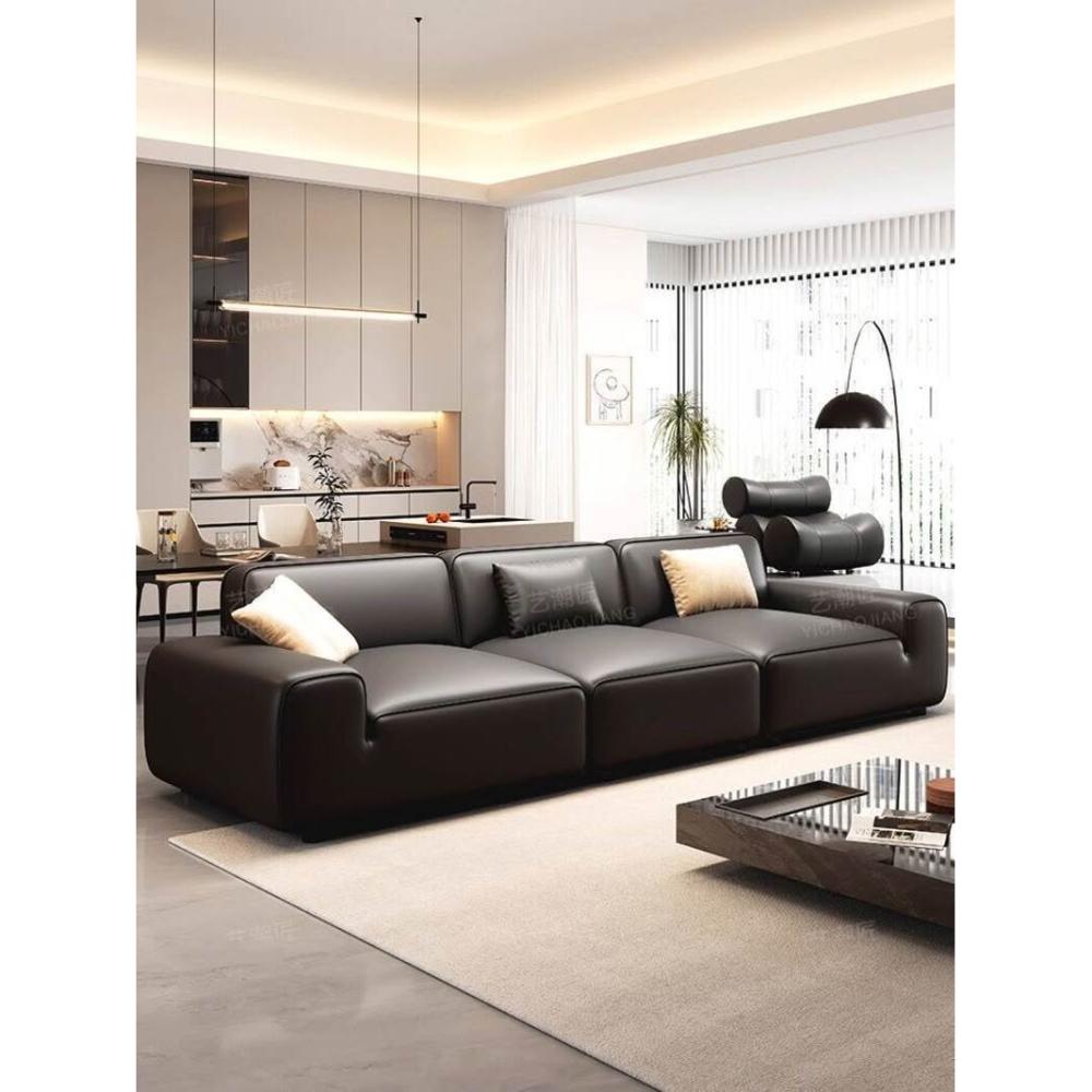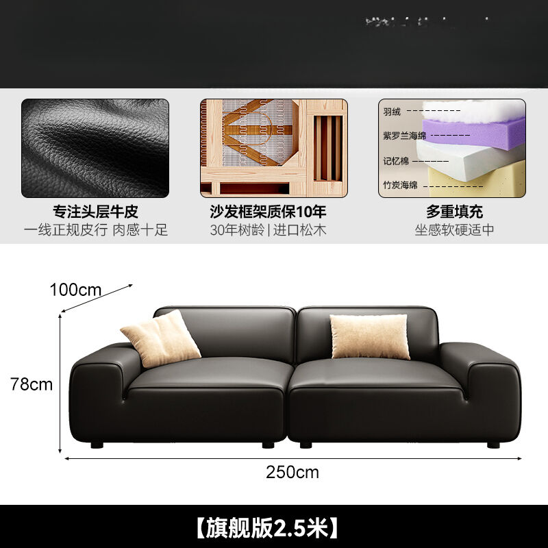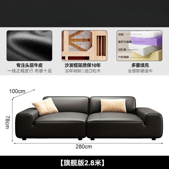 2025新款大黑牛真皮沙發頭層牛皮復古黑色豆腐塊橫沙發