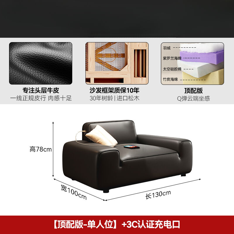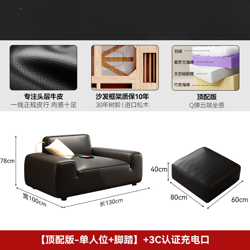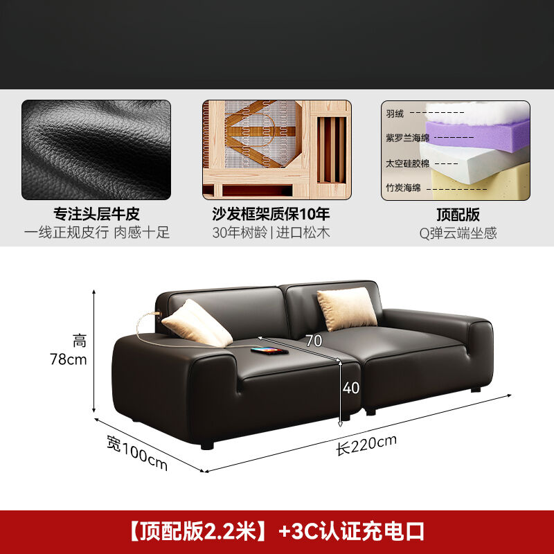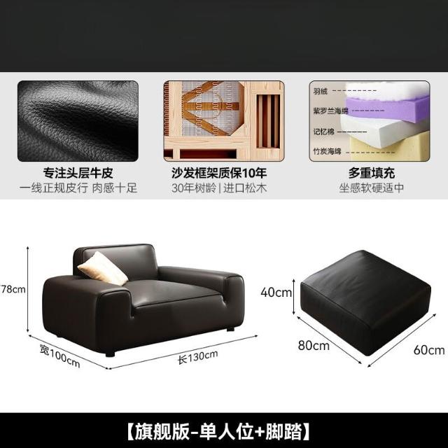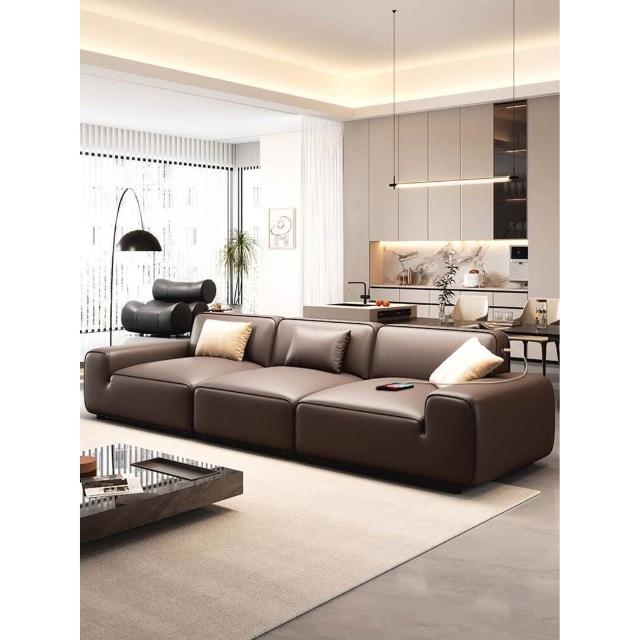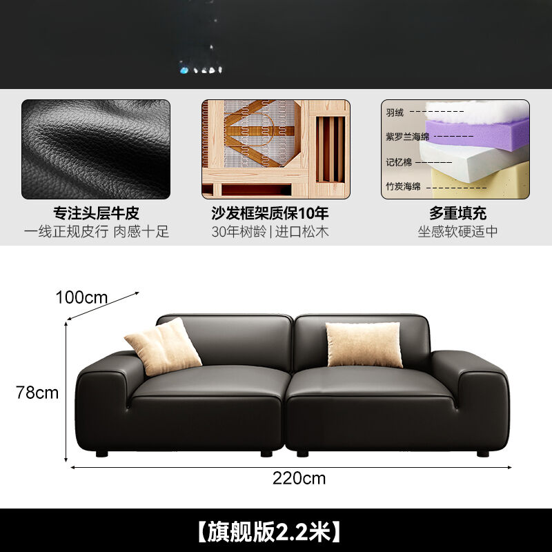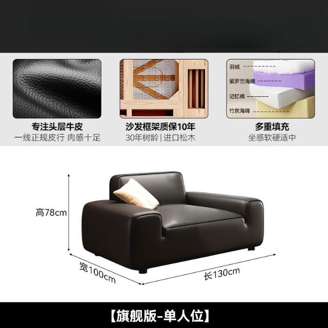 2025新款大黑牛真皮沙發頭層牛皮復古黑色豆腐塊橫沙發