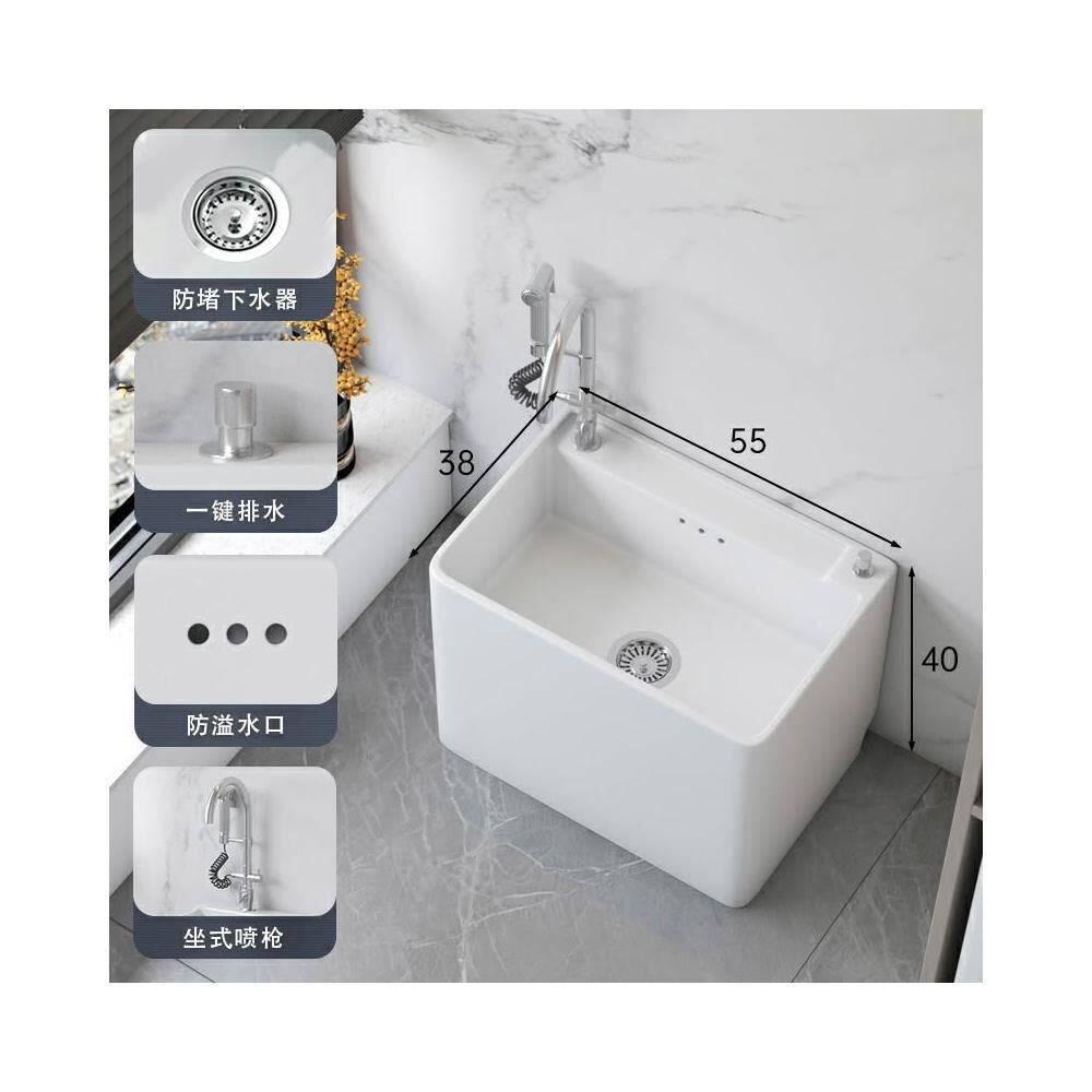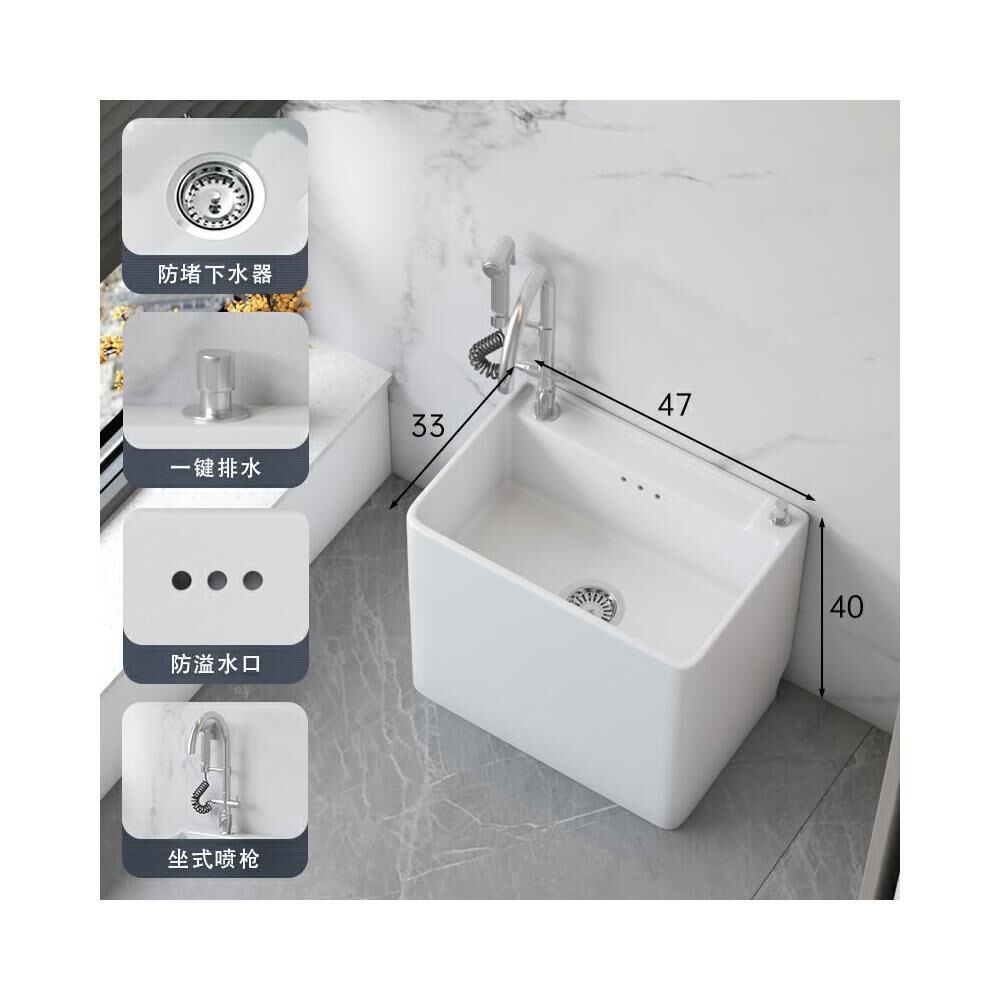 洗地盆 移動水池槽 落地式阳台拖把池陶瓷拖布池卫生间大号拖盆水池槽落地家用小号墩布池盆