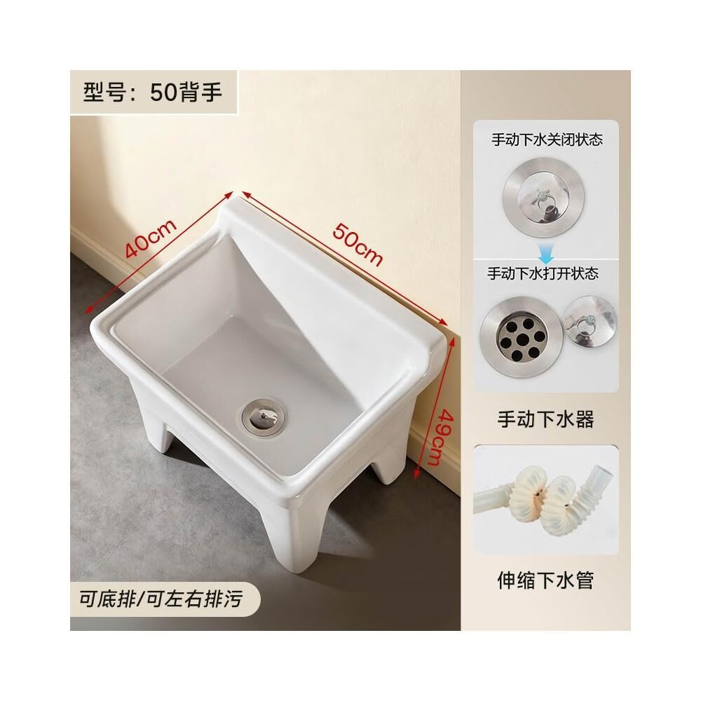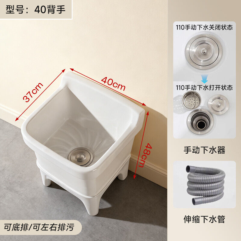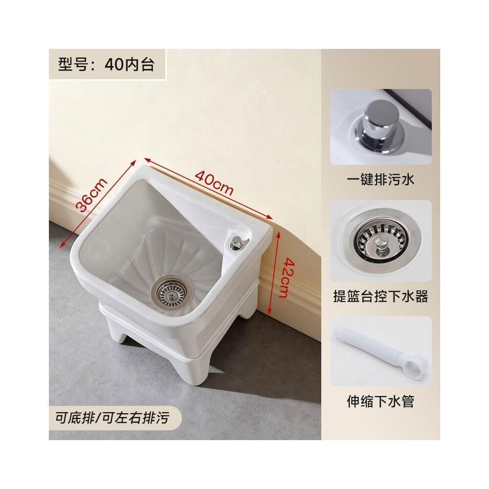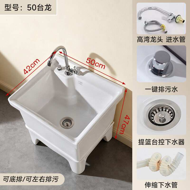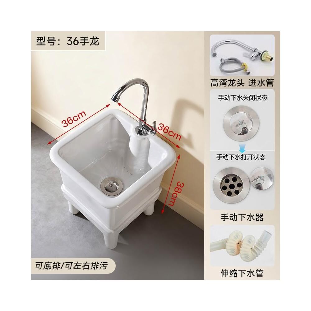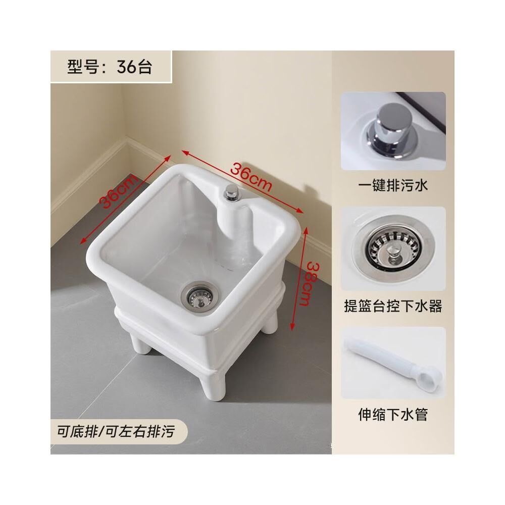 落地式拖把池阳台小号陶瓷洗拖布池特价墩布池家用卫生间方形自动下水器