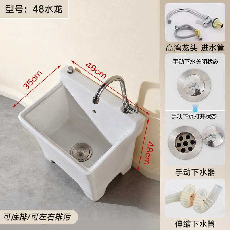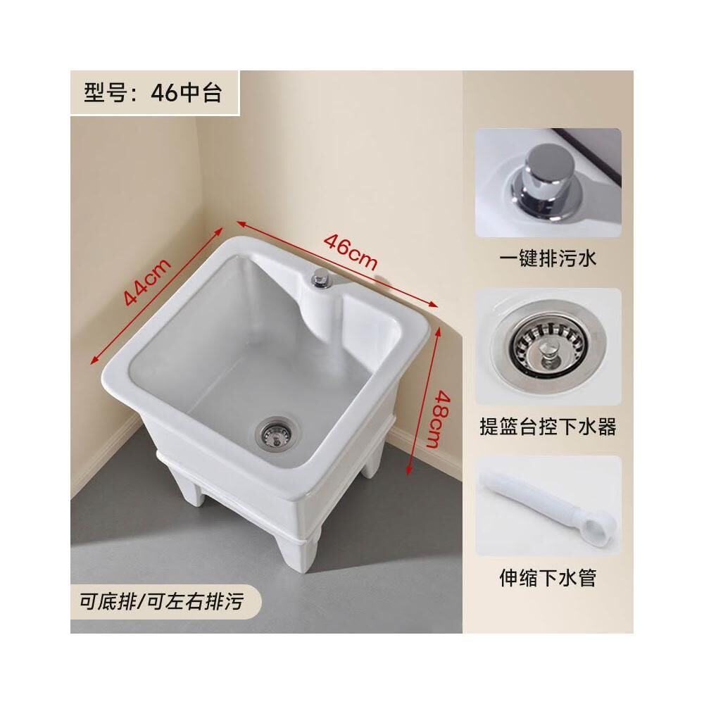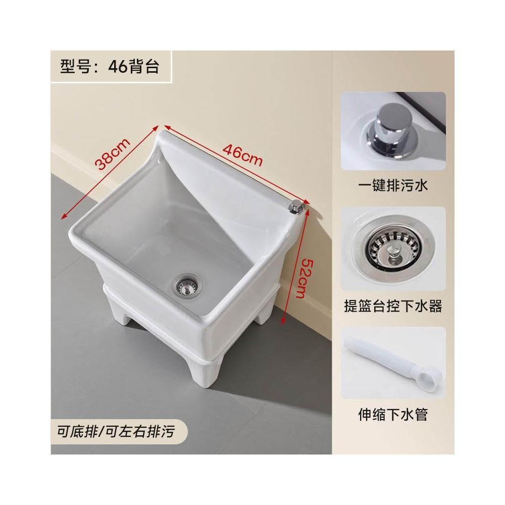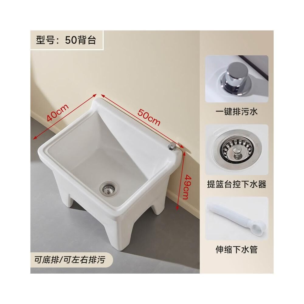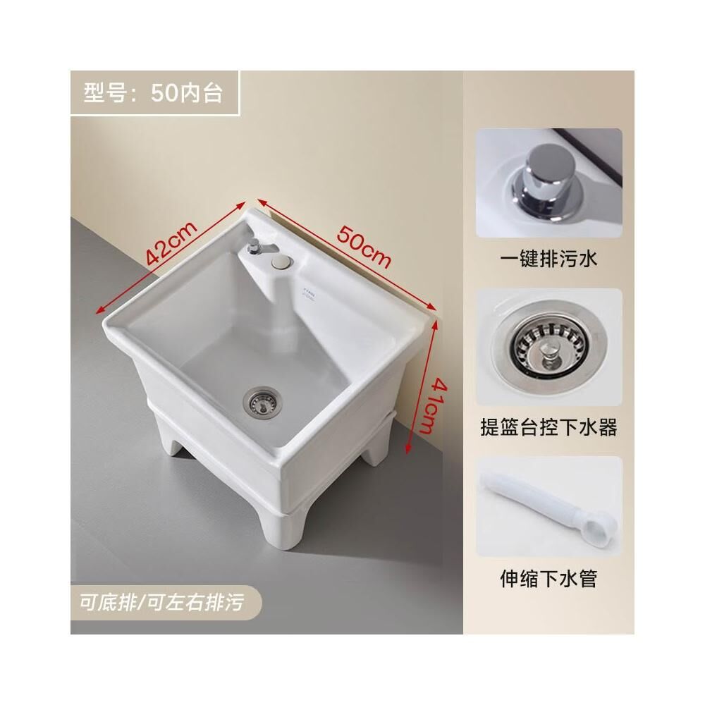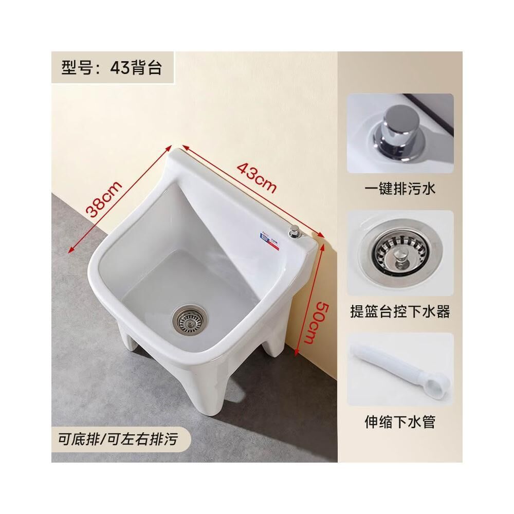 落地式拖把池阳台小号陶瓷洗拖布池特价墩布池家用卫生间方形自动下水器
