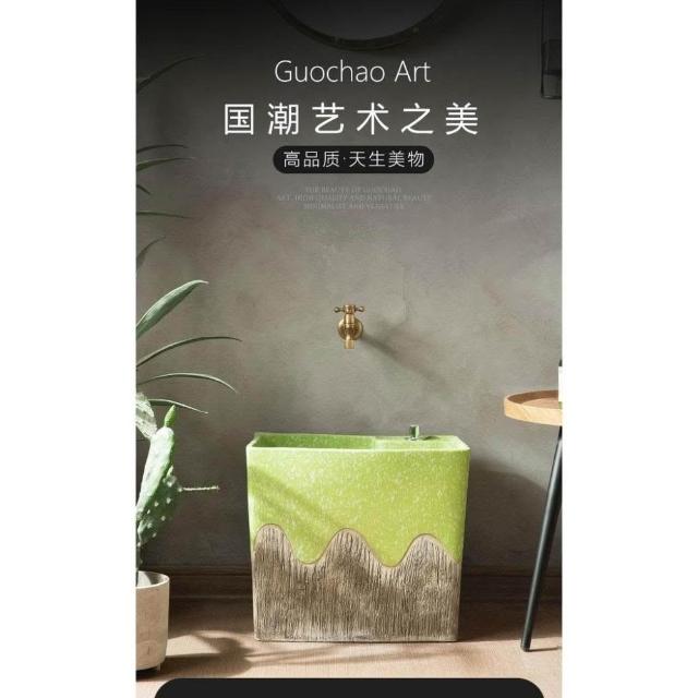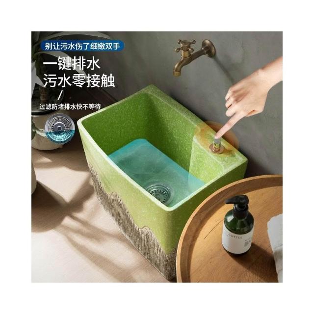 落地式拖把池家用阳台陶瓷墩布池北欧洗地拖池窄大小号托帕池户外拖布池