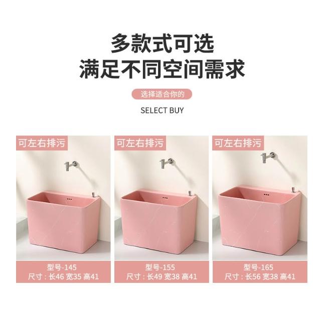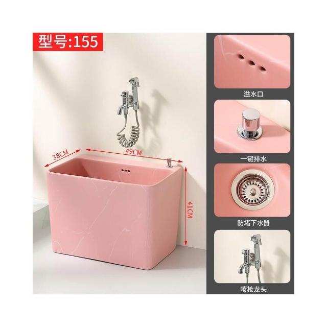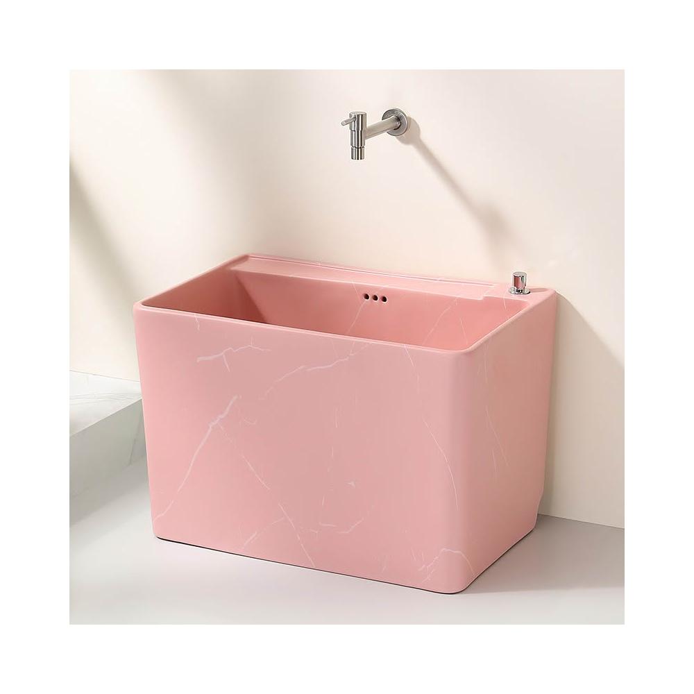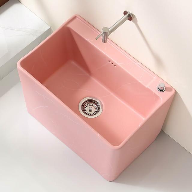 粉色岩板纹理拖把池陶瓷家用阳台卫生间落地式拖布池水槽