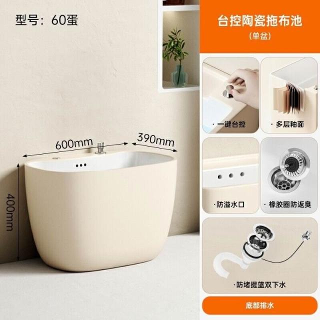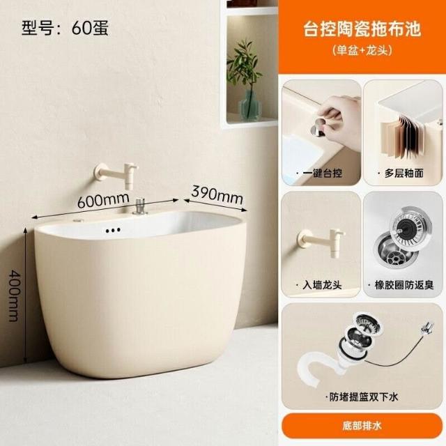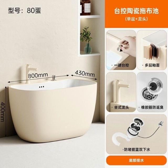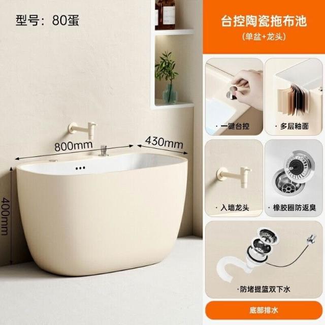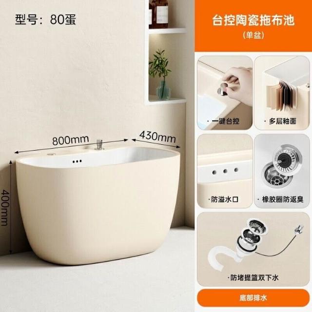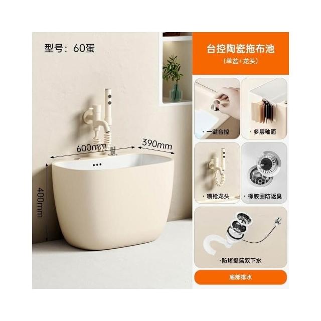陶瓷拖把池创意蛋形奶油风小户型阳台洗拖把池家用卫生间大号陶瓷拖布池