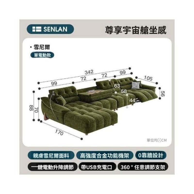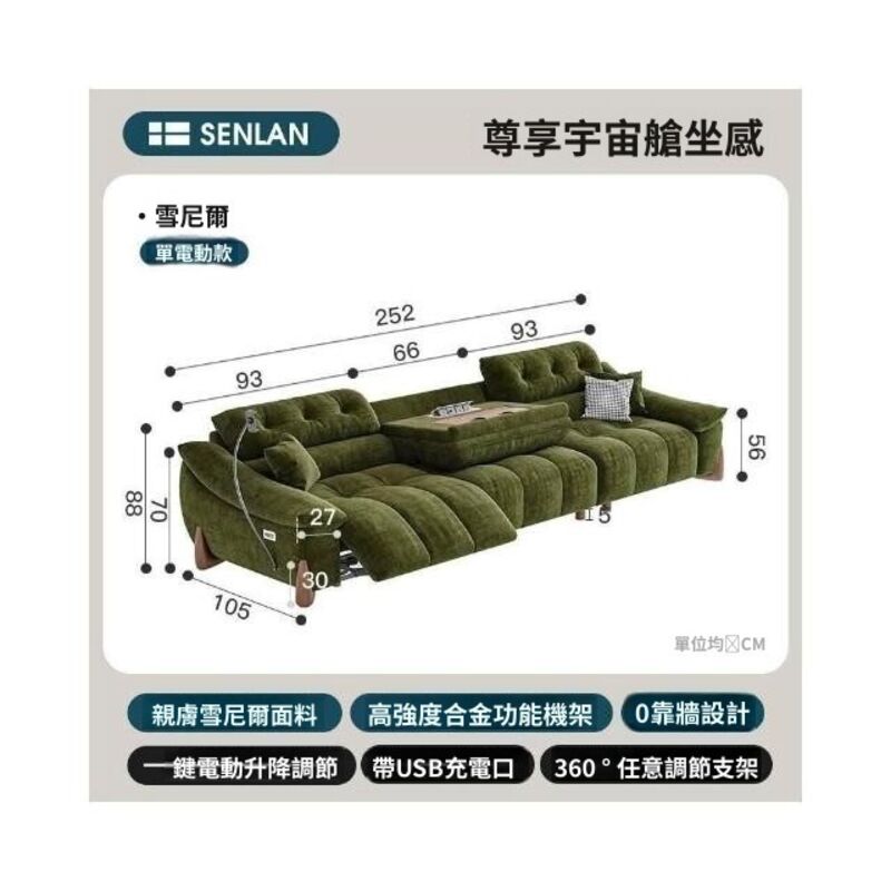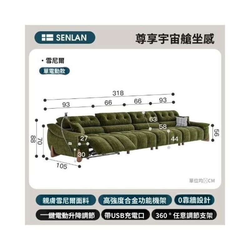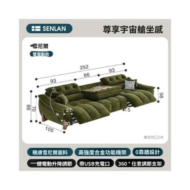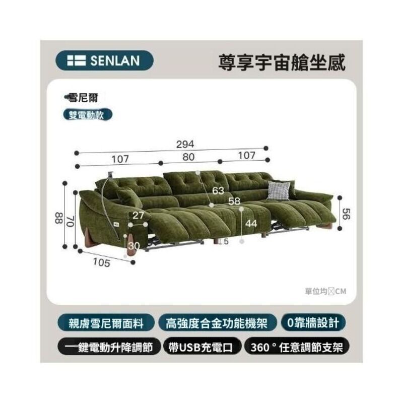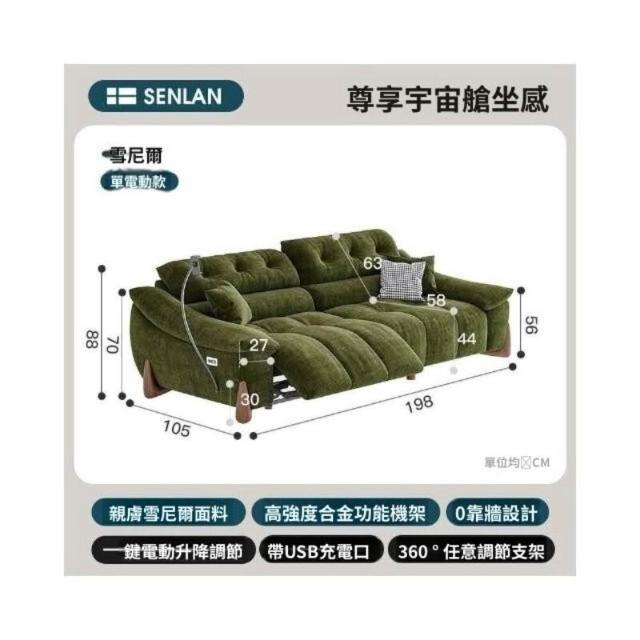 Terraforma零靠牆多功能電動沙發復古可調節頭等智能艙雪尼爾絨布藝三人沙發