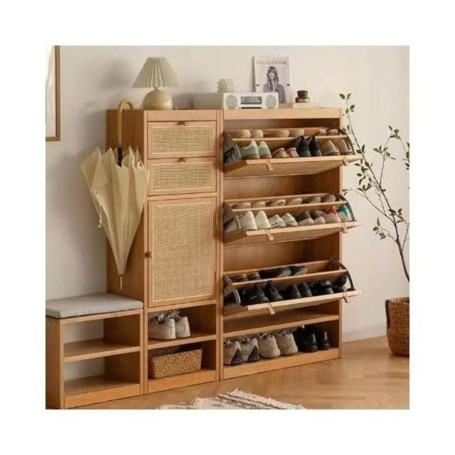 「Terraforma」鞋櫃 超薄鞋櫃 玄關鞋櫃 日式实木藤编鞋柜家用门口玄关柜小户型翻斗大容量超薄储物收纳柜