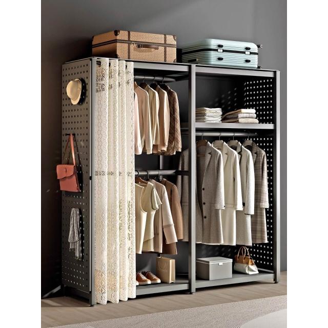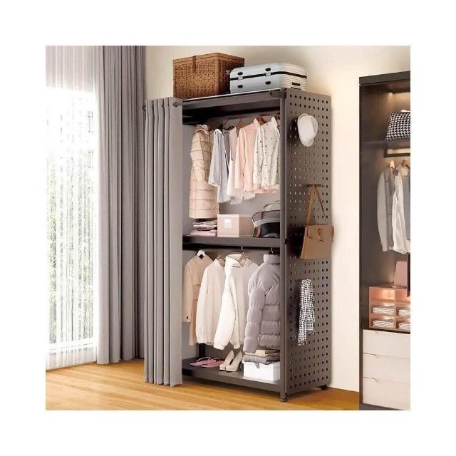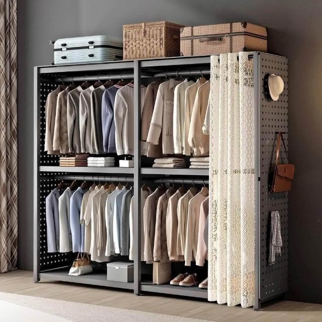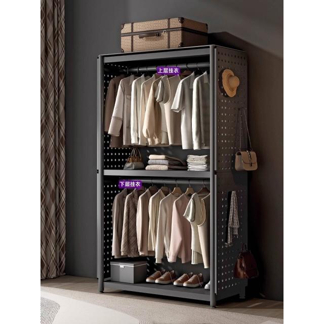 衣櫃家用臥室洞洞板貨架收納櫃簡易組裝出租房衣帽間金屬衣架落地