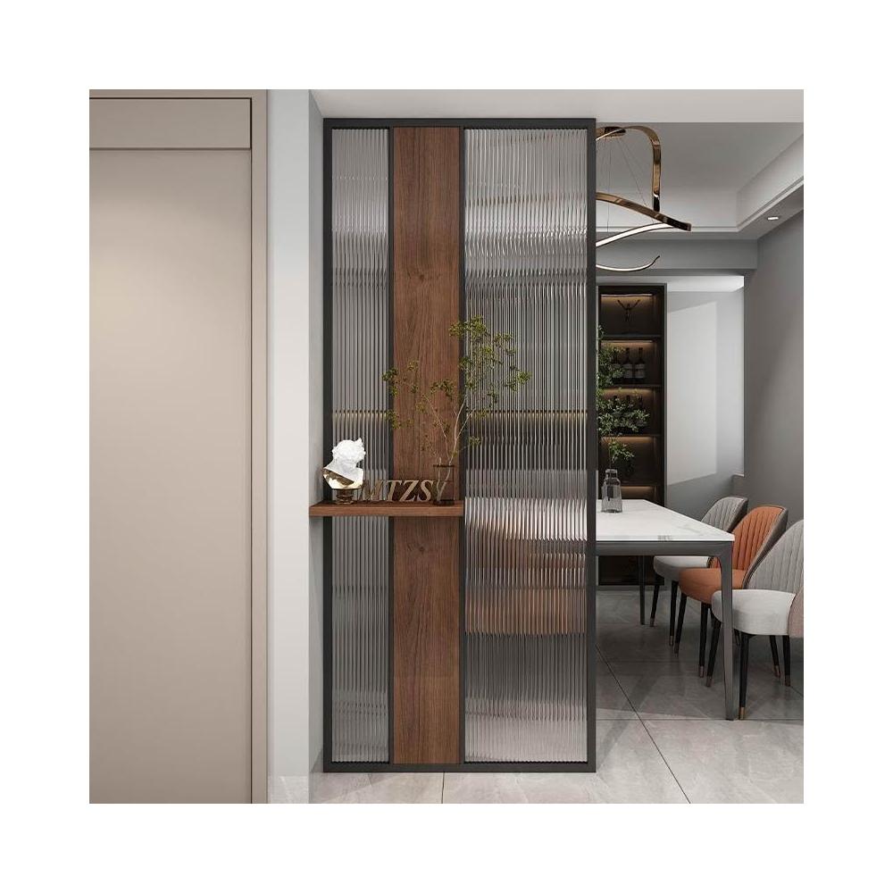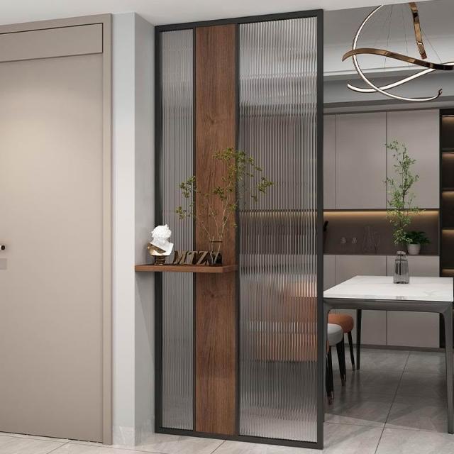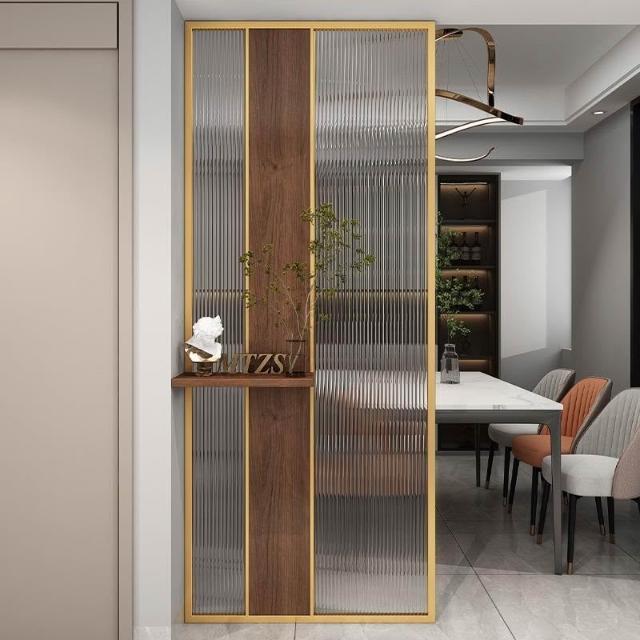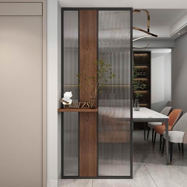 客製化屏風 隔斷 现代简约轻奢设计艺术客厅入户玄关长虹钢化玻璃立柱实木屏风隔断