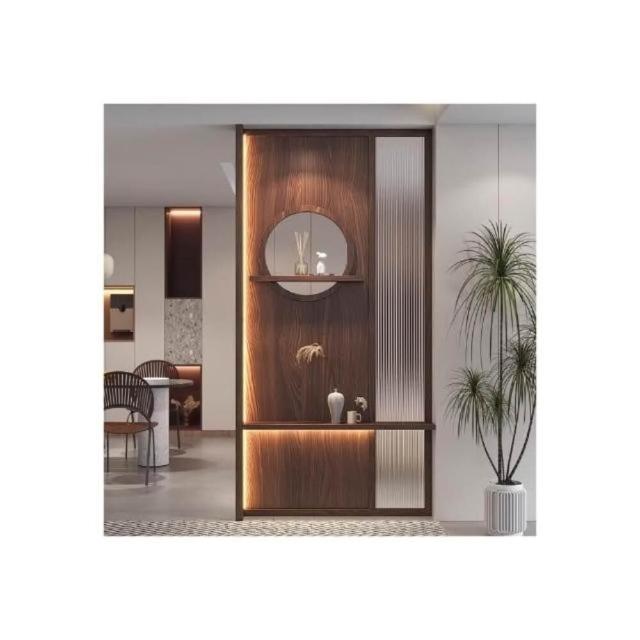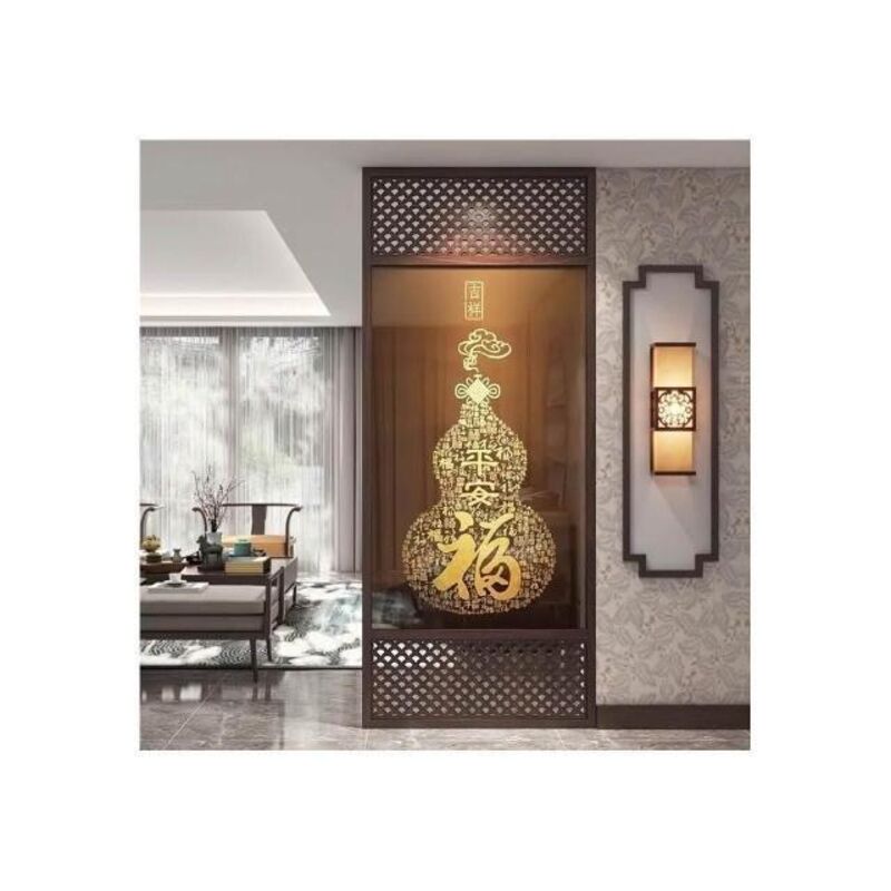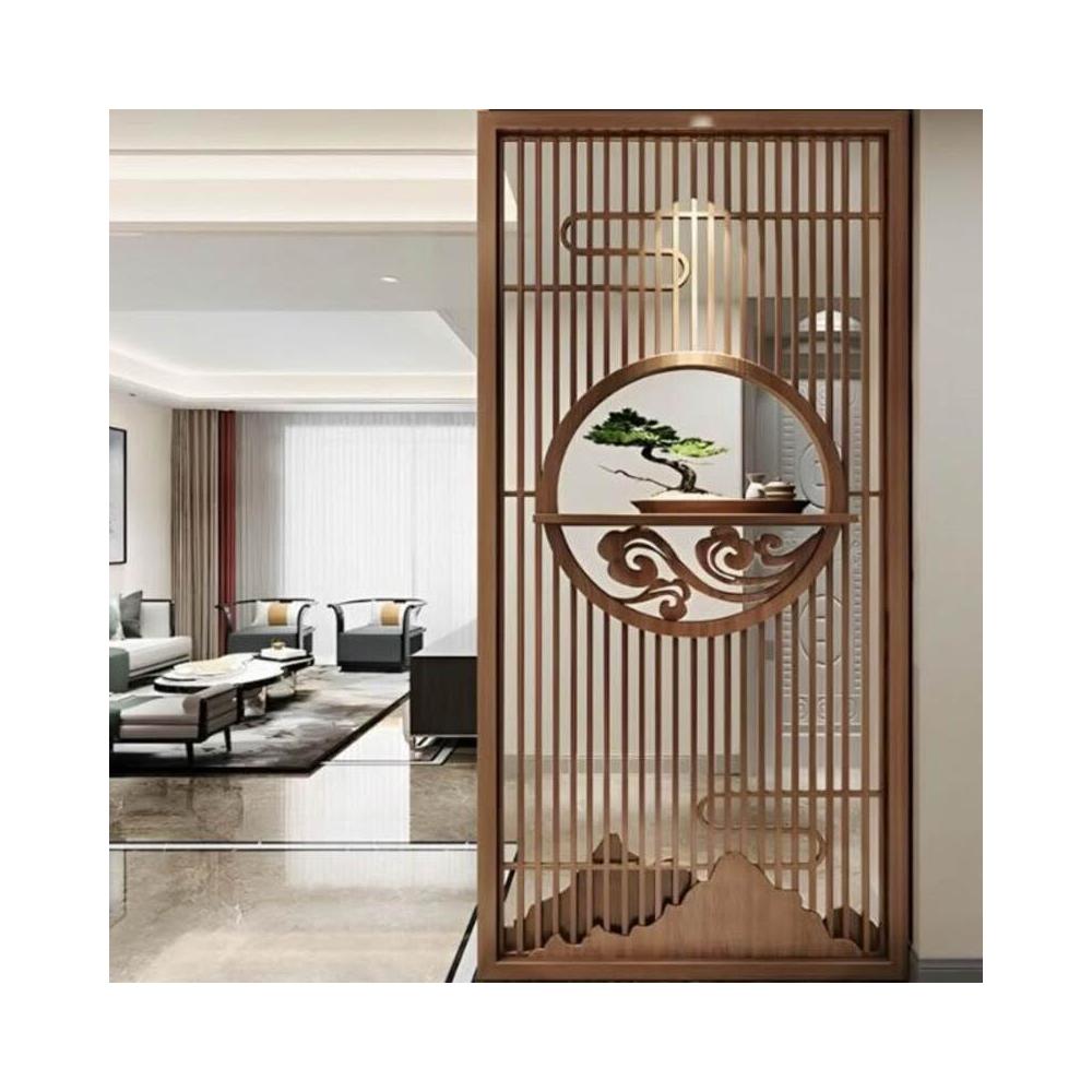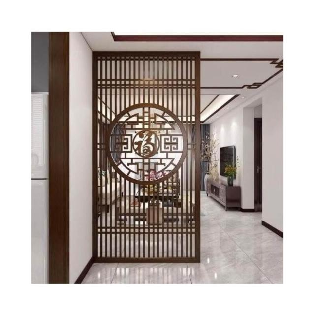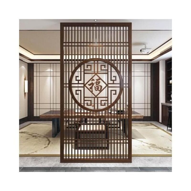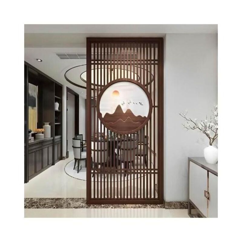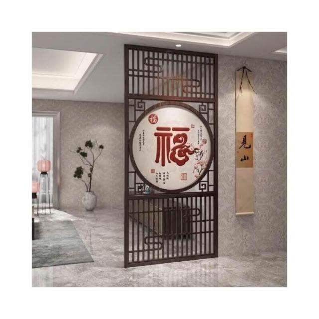 客製化屏風 隔斷 新中式黑胡桃木入户实木屏风隔断客厅玄关遮挡门厅柜格栅座屏定制