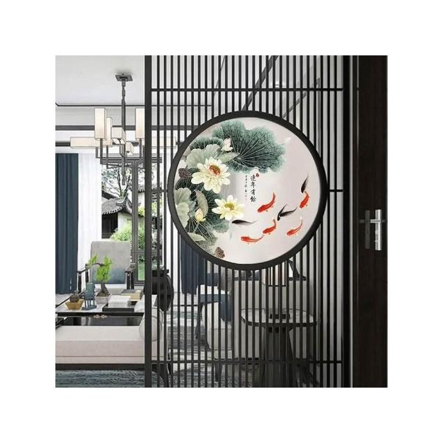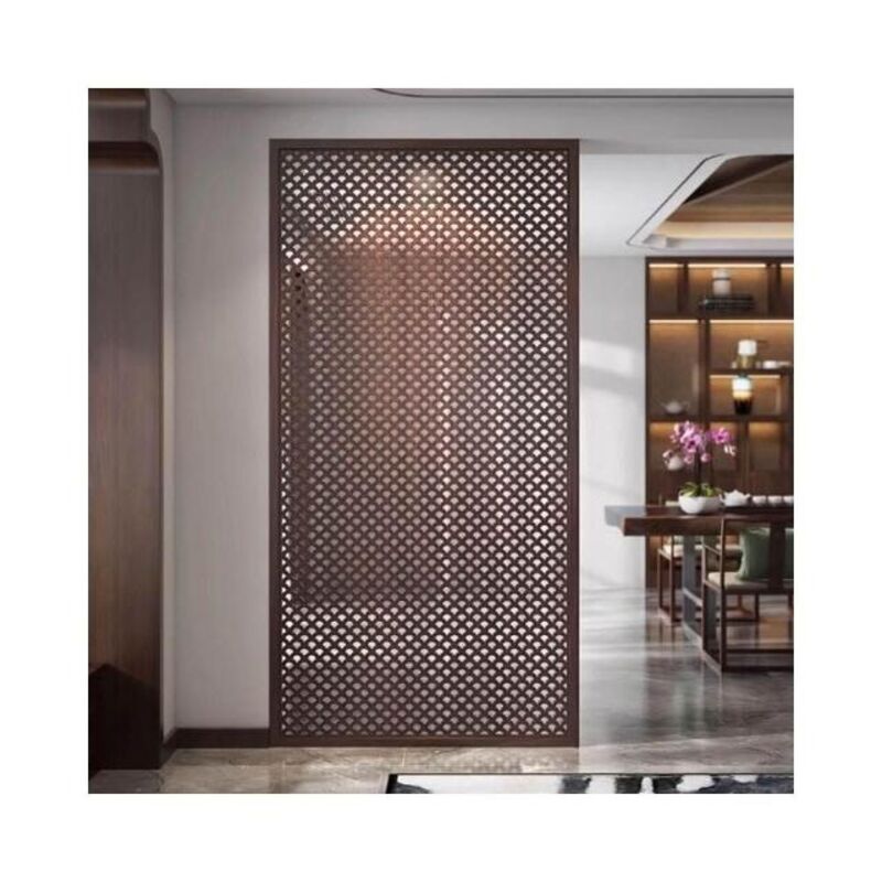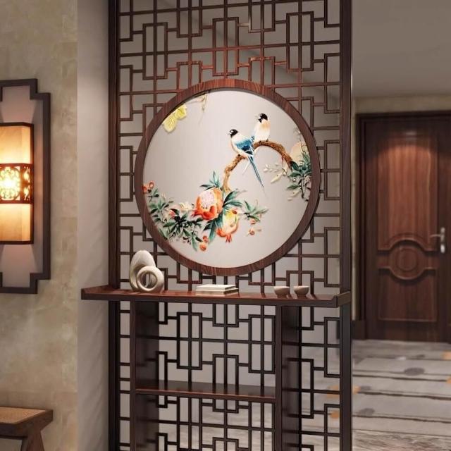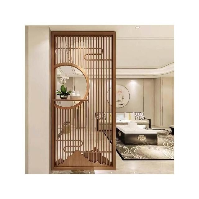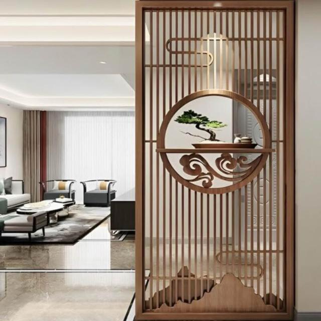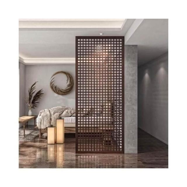 客製化屏風 隔斷 新中式黑胡桃木入户实木屏风隔断客厅玄关遮挡门厅柜格栅座屏定制
