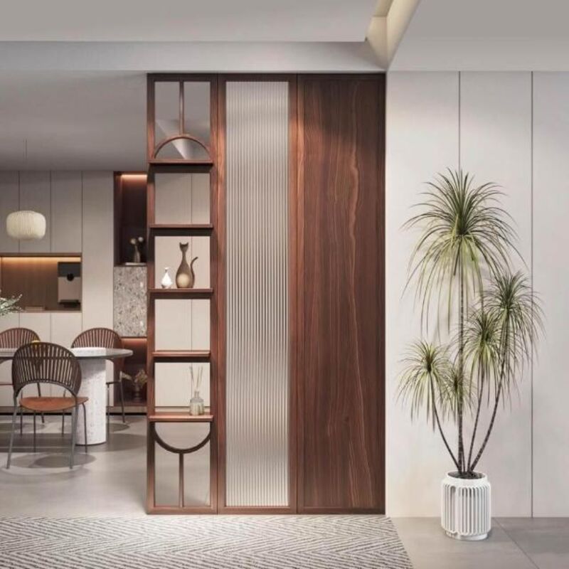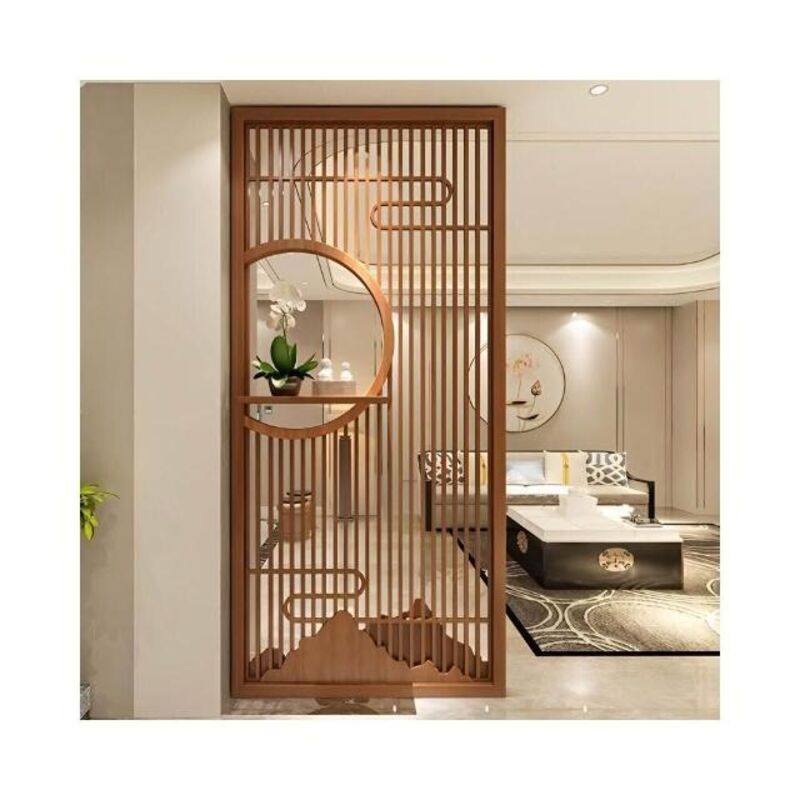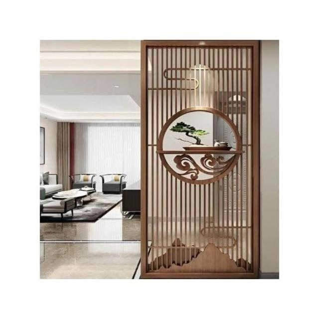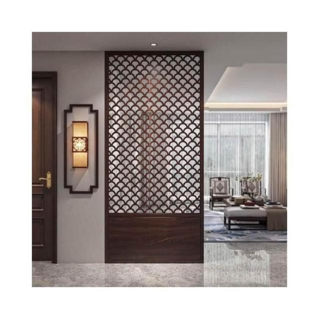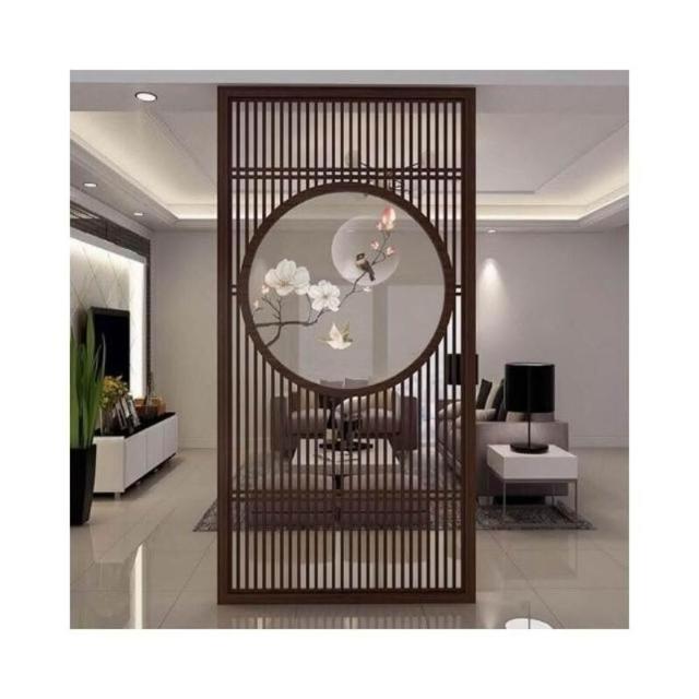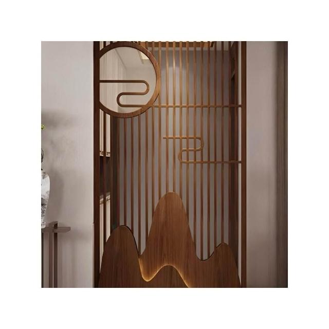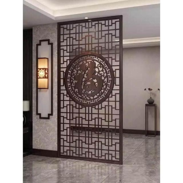 客製化屏風 隔斷 新中式黑胡桃木入户实木屏风隔断客厅玄关遮挡门厅柜格栅座屏定制