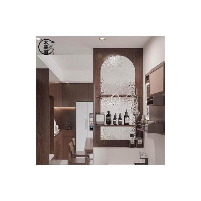 客製化屏風 隔斷 半墙隔断新中式实木屏风新款客厅玄关入户装饰双面遮挡玻璃带挂钩