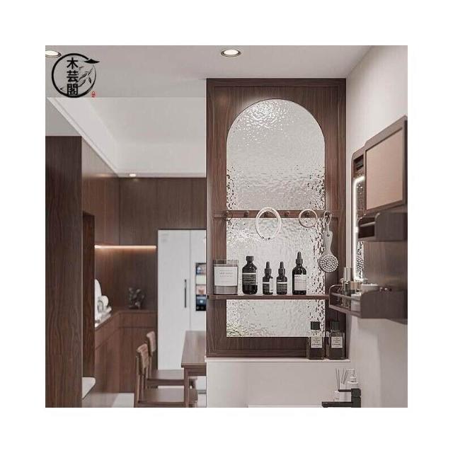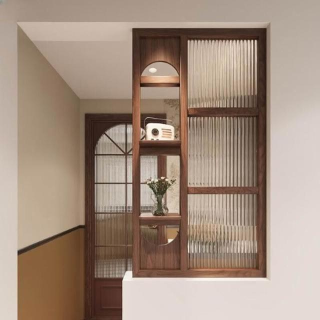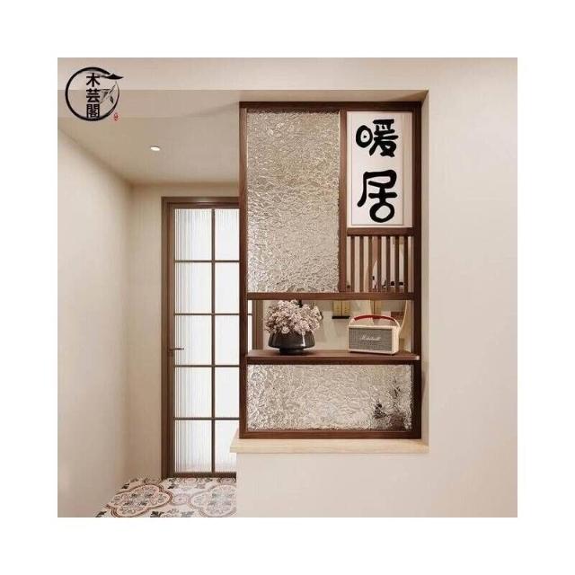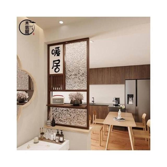 客製化屏風 隔斷 半墙隔断新中式实木屏风新款客厅玄关入户装饰双面遮挡玻璃带挂钩