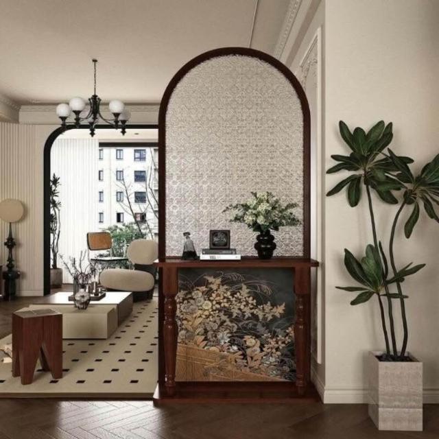 客製化屏風 隔斷 法式中古实木屏风隔断客厅入户正对门玄关卫生间穿堂移动遮挡座屏