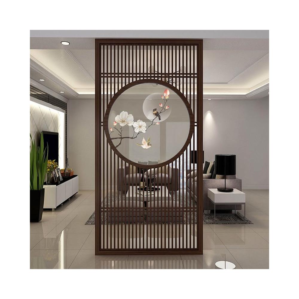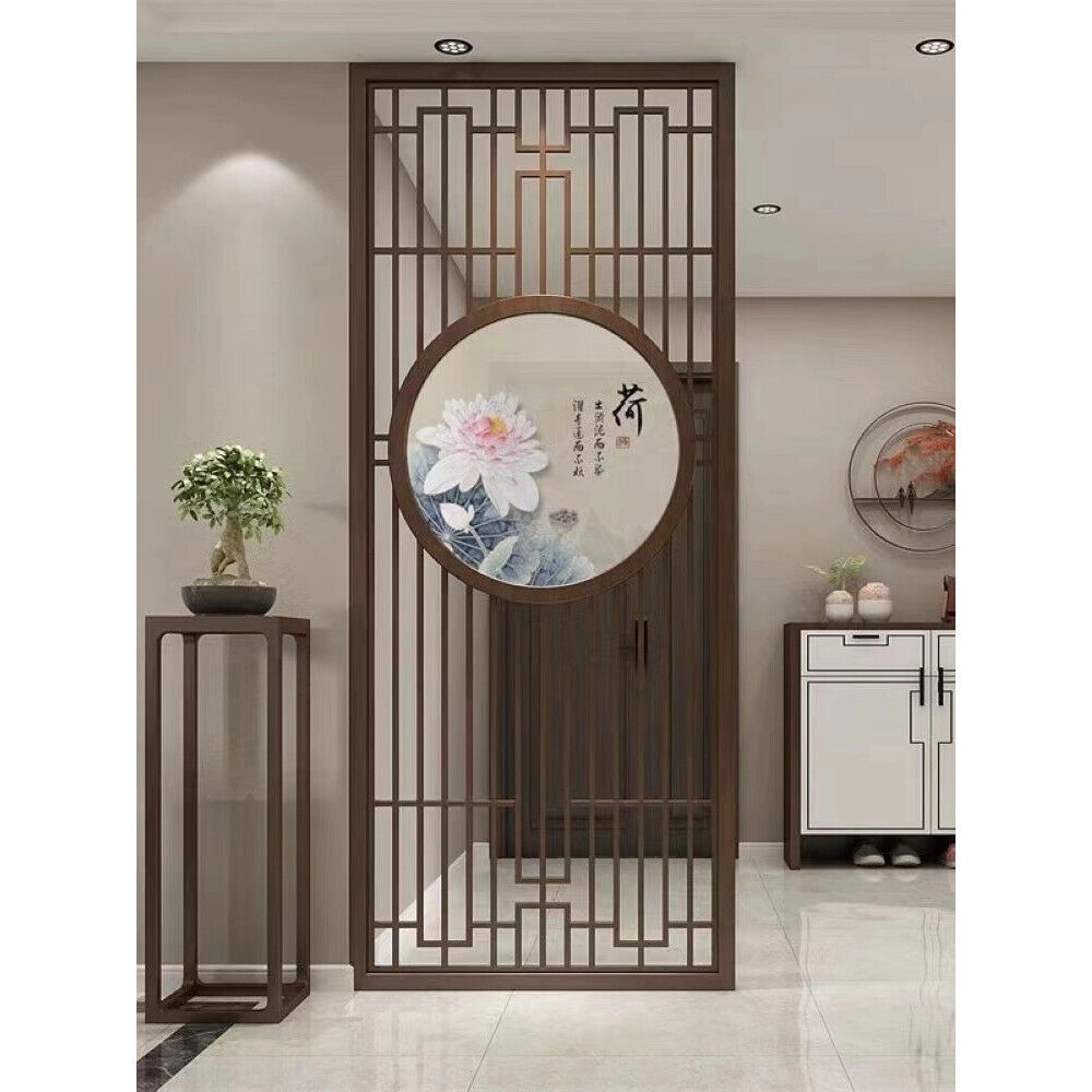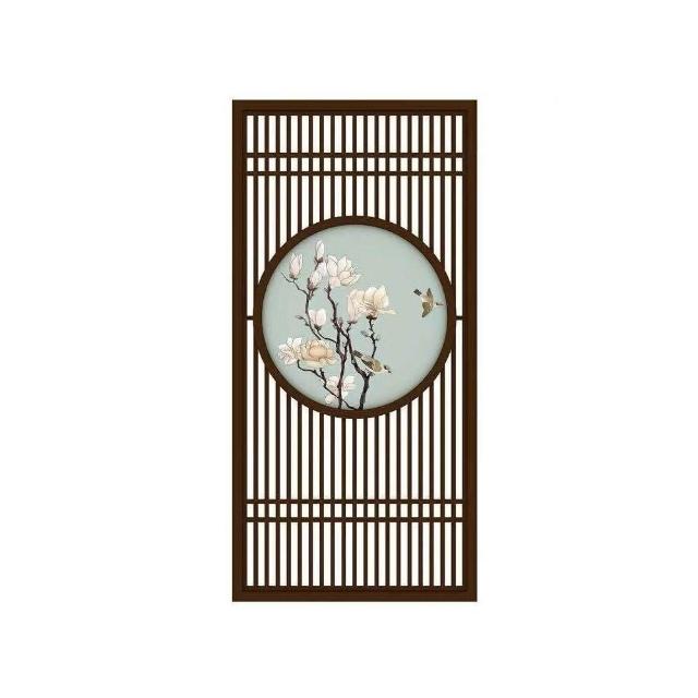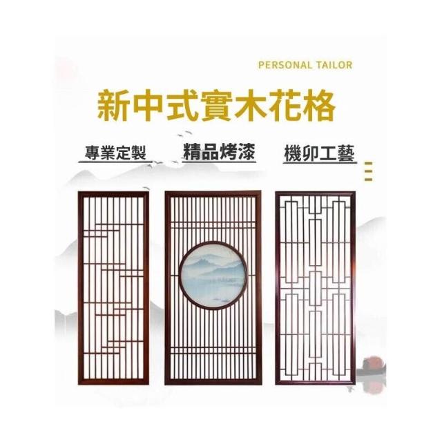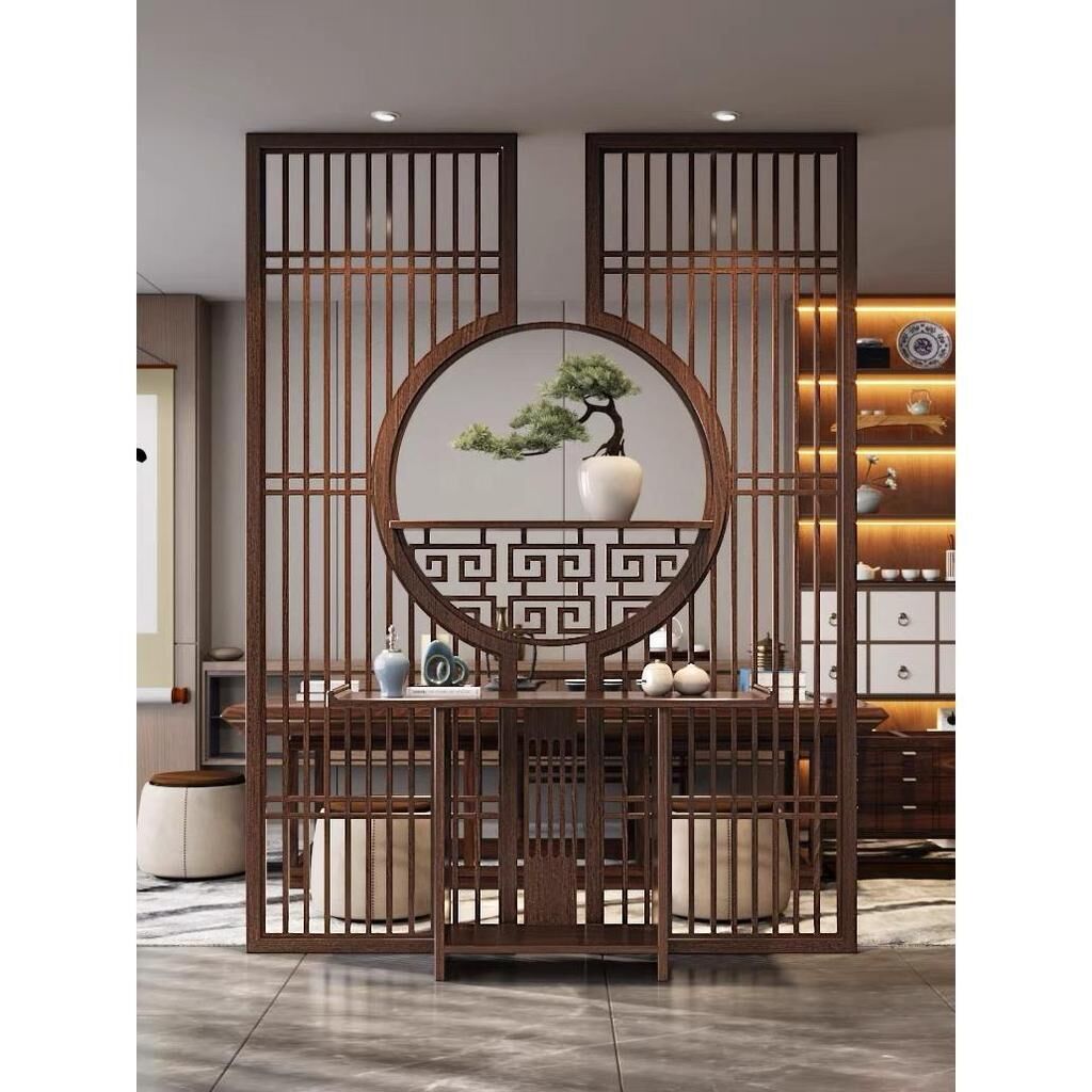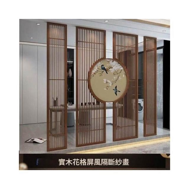 客製化屏風 隔斷 新中式屏風隔斷實木格柵镂空花格紗畫客廳入戶對門玄關遮擋座屏