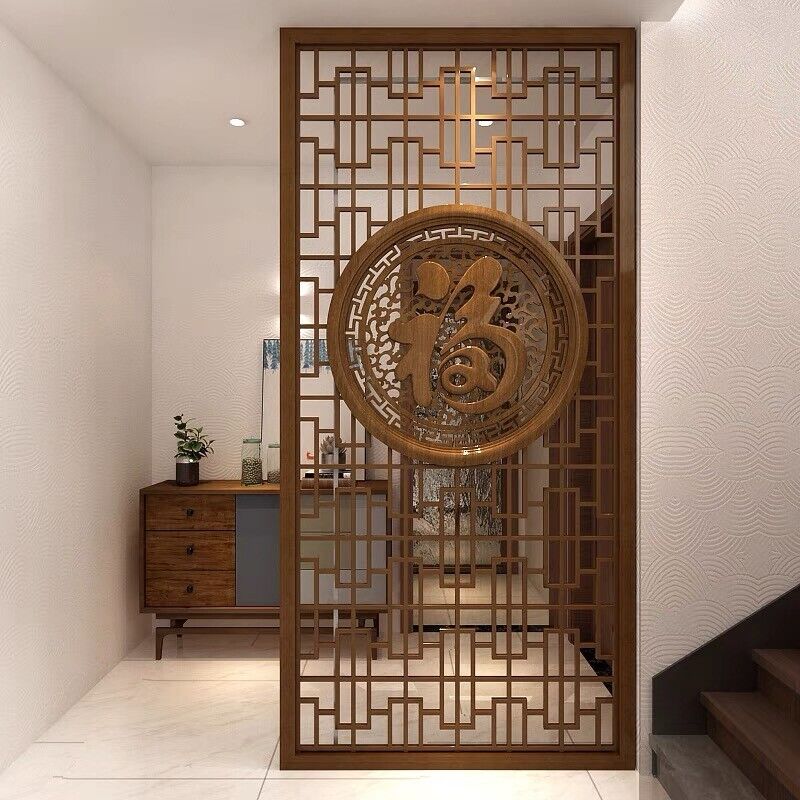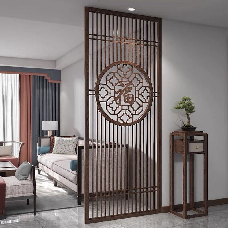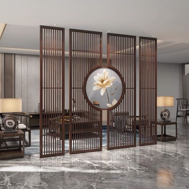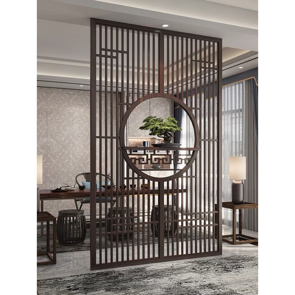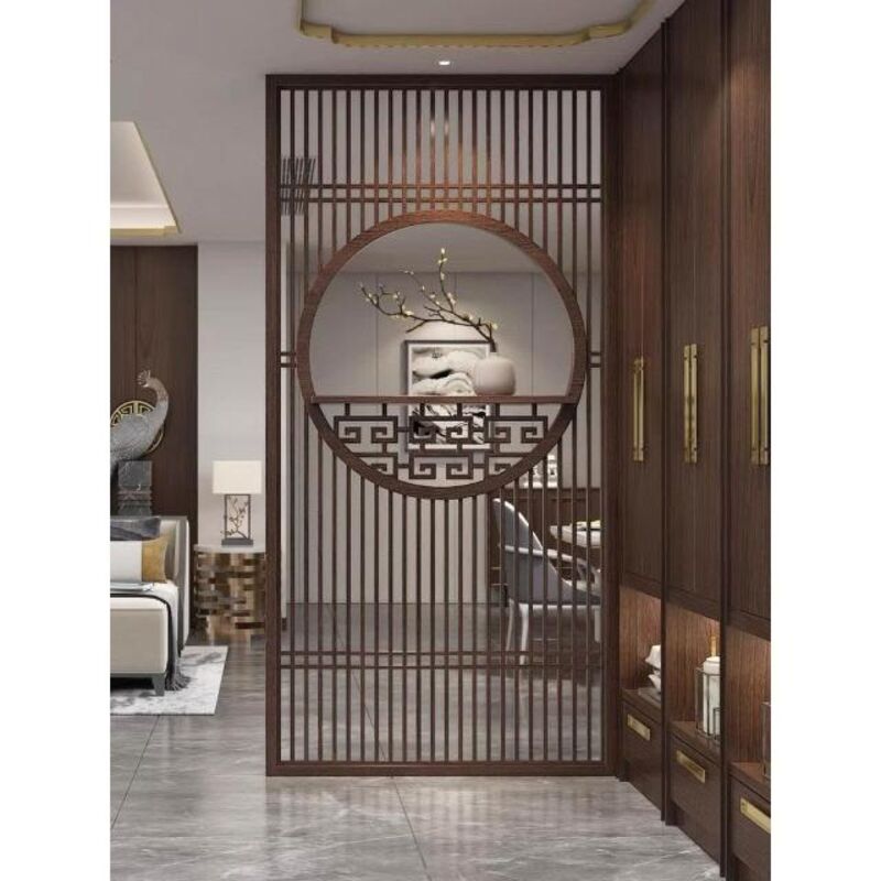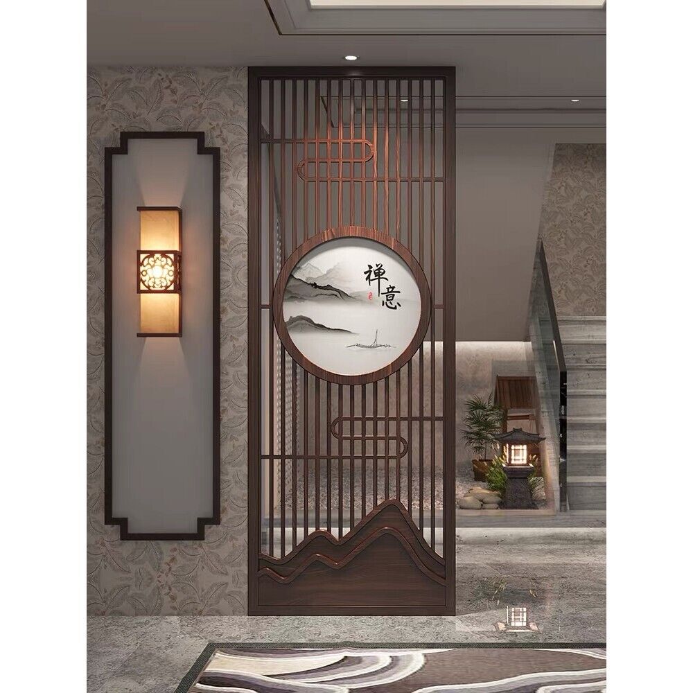 客製化屏風 隔斷 新中式屏風隔斷實木格柵镂空花格紗畫客廳入戶對門玄關遮擋座屏