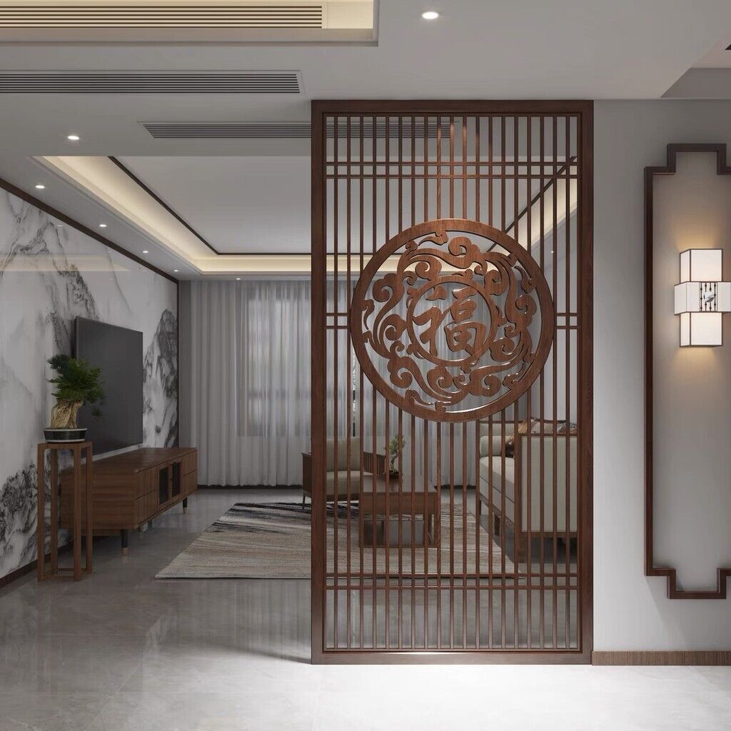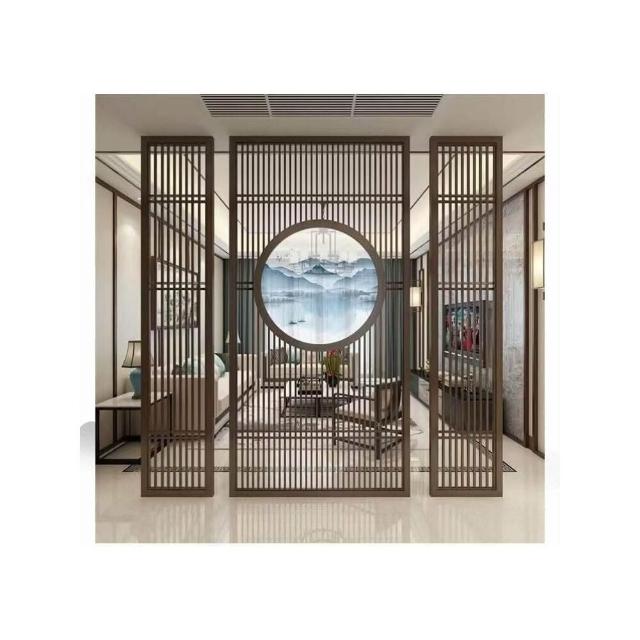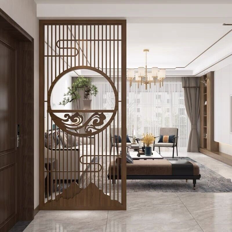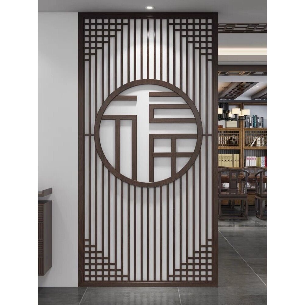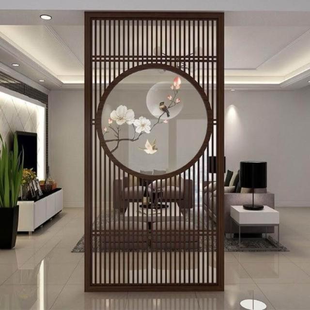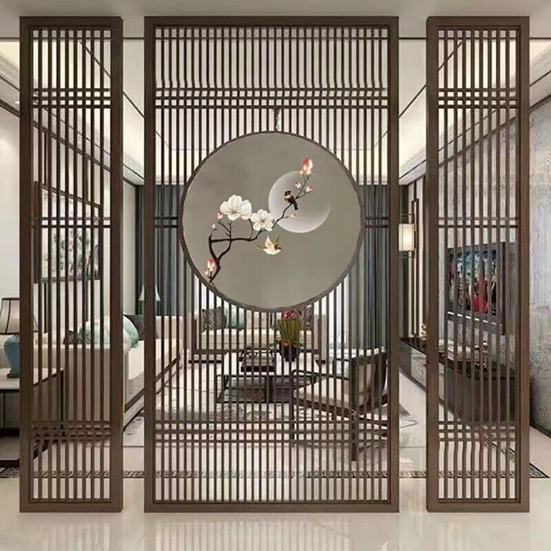 客製化屏風 隔斷 新中式屏風隔斷實木格柵镂空花格紗畫客廳入戶對門玄關遮擋座屏