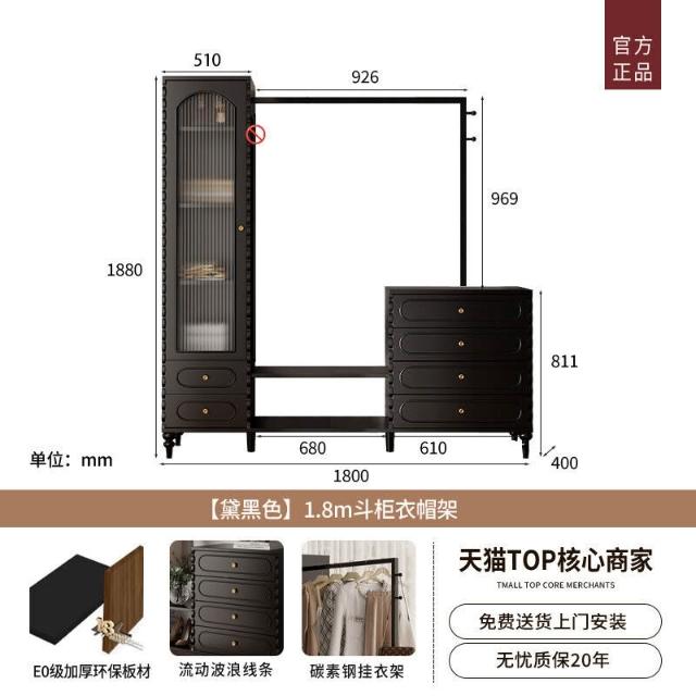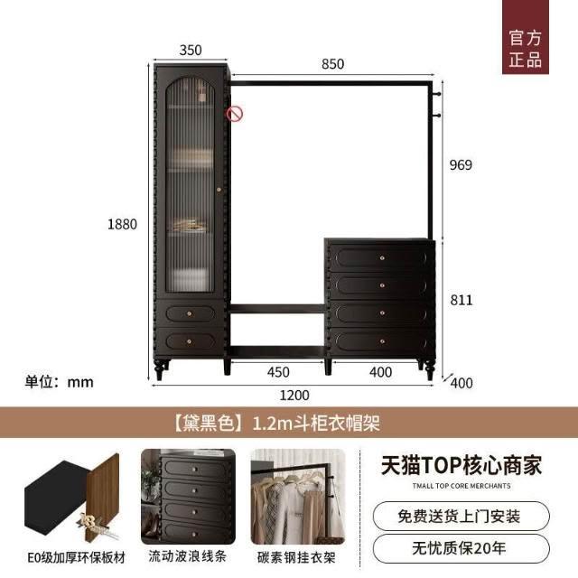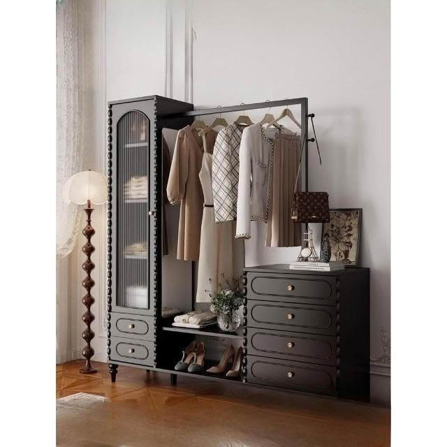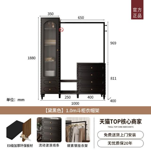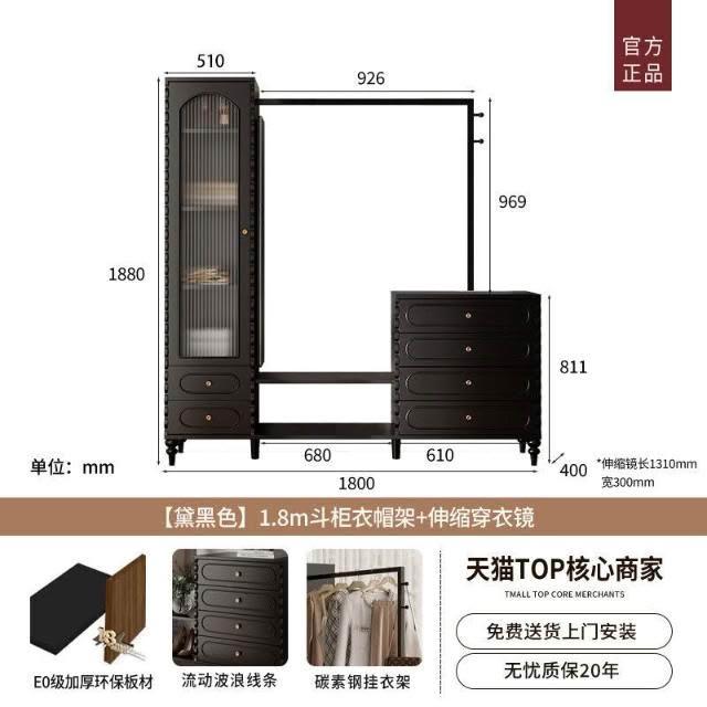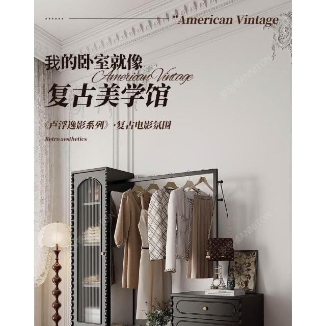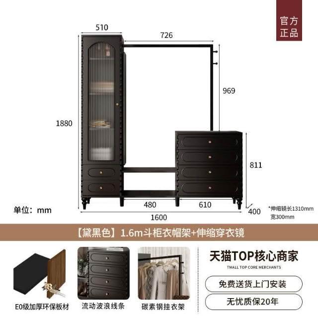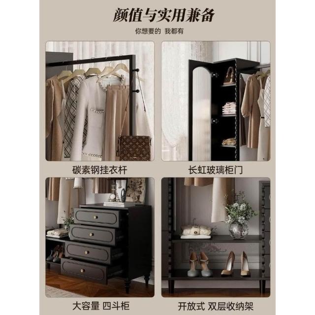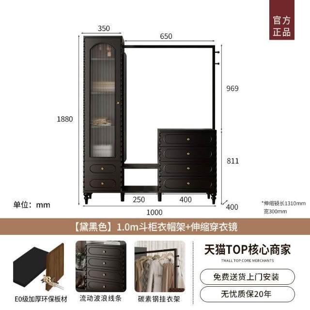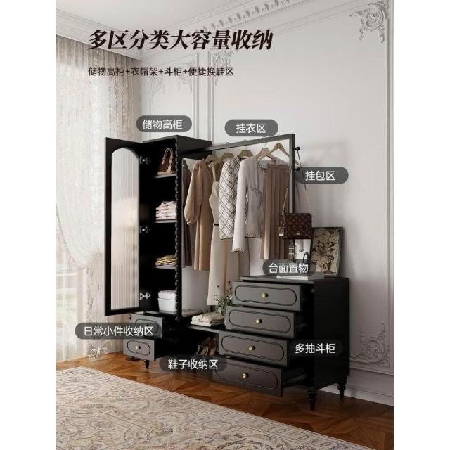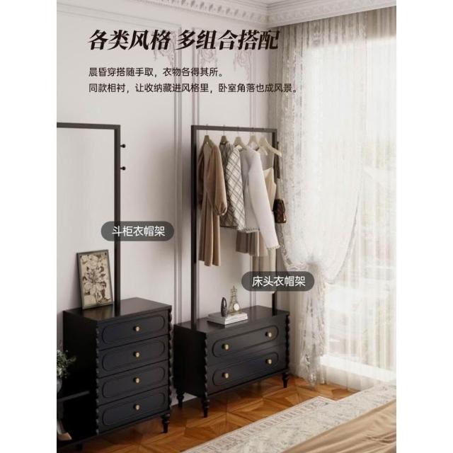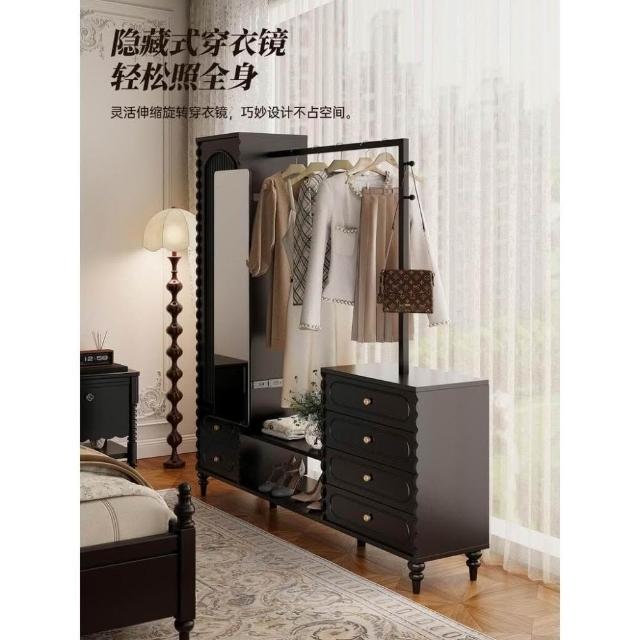 Terraforma美式復古衣帽架臥室家用床邊鬥櫃一體穿衣鏡落地收納儲物掛衣架