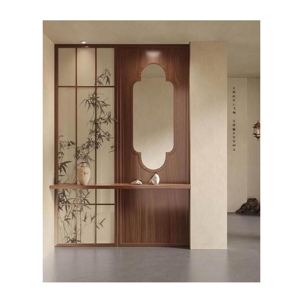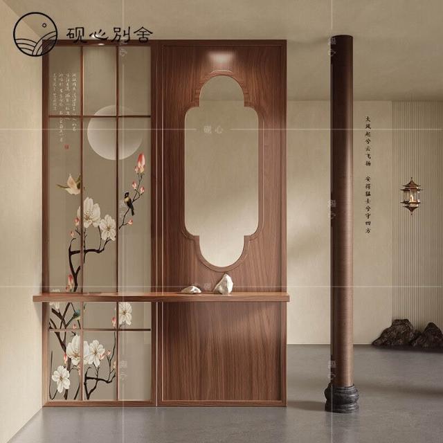 新中式屏風隔斷客廳入戶玄關遮擋實木鏤空軒窗花窗茶室宋代美學