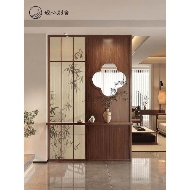 新中式屏風隔斷客廳入戶玄關遮擋實木鏤空軒窗花窗茶室宋代美學