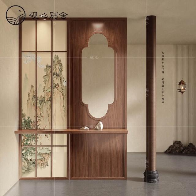 新中式屏風隔斷客廳入戶玄關遮擋實木鏤空軒窗花窗茶室宋代美學