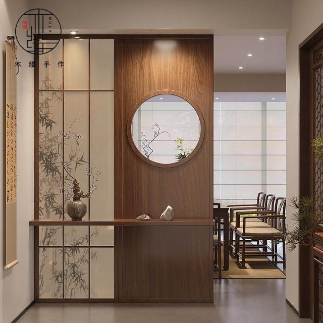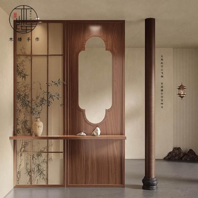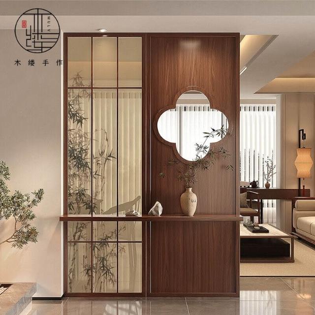 宋代美學屏風隔斷客廳入戶玄關別墅茶室進門遮擋實木背景裝飾定製