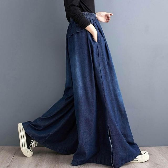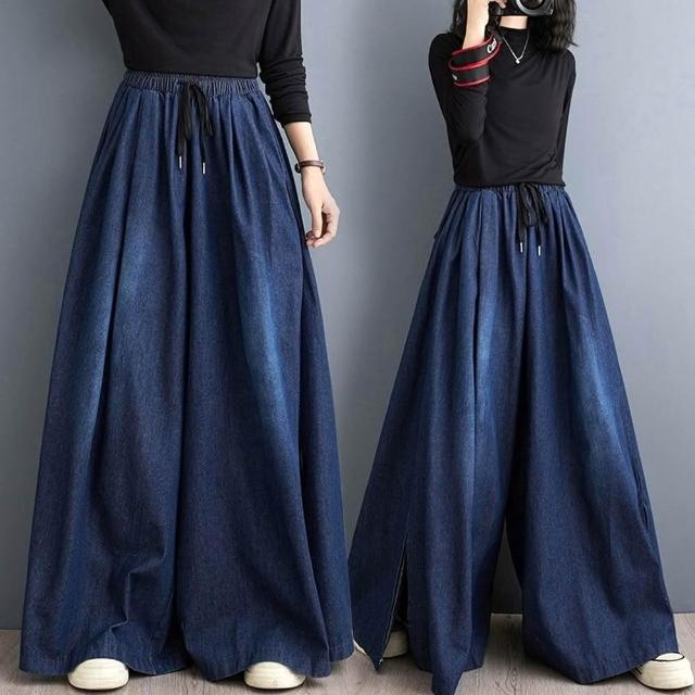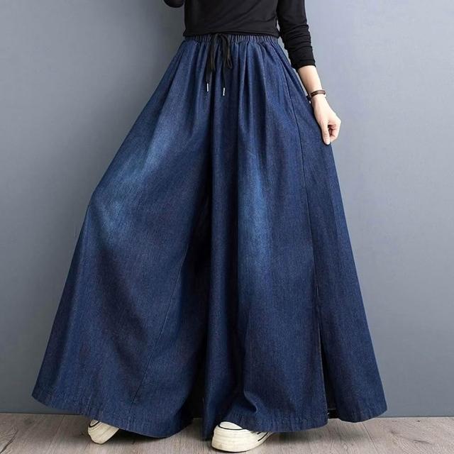 巴黎精品紐約精品 限時特價 高腰牛仔褲長褲大碼寬褲直筒褲裙落地褲休閒女裝(高腰抽繩寬管褲裙女褲子a1jc71)