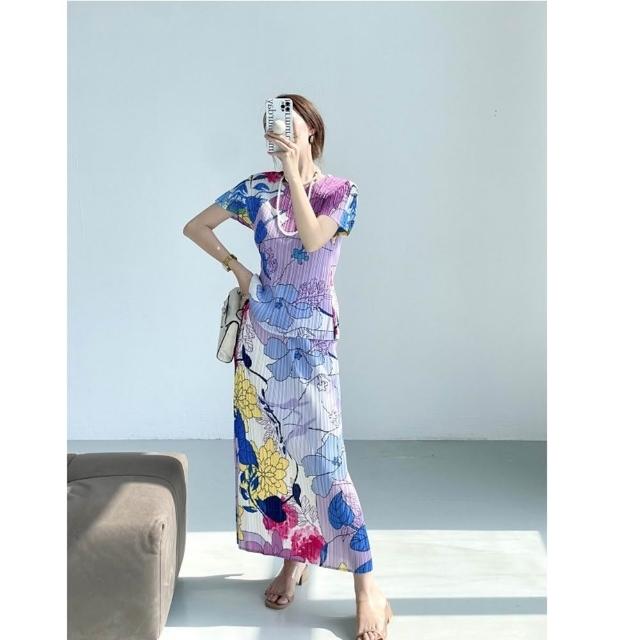 巴黎精品紐約精品 現貨+預購 三宅風皺褶衣服套裝女上衣長裙高級摺衣彈力女裝顯瘦折衣大碼T恤印花短袖3色a1jb29