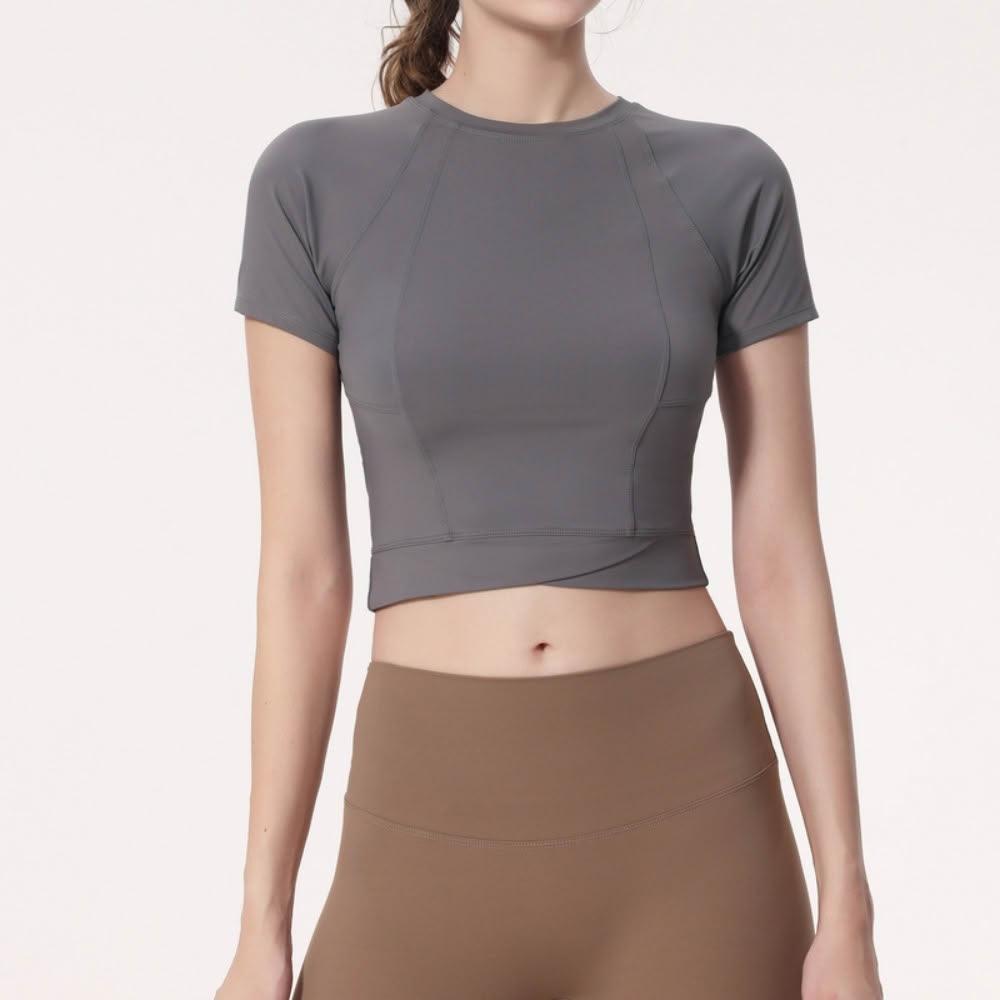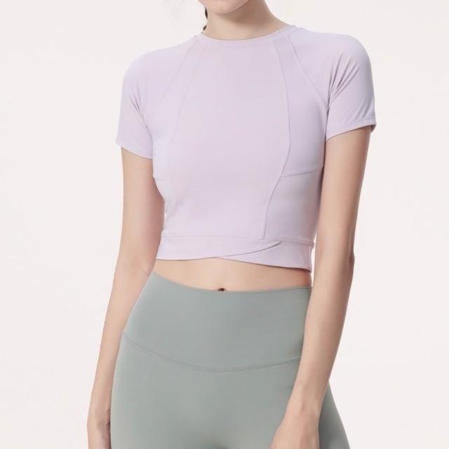 巴黎精品紐約精品 現貨+預購 女運動服短袖瑜珈服背心瑜伽服裸感親膚透氣速乾(圓領露肚顯瘦緊身女上衣a1jo3)