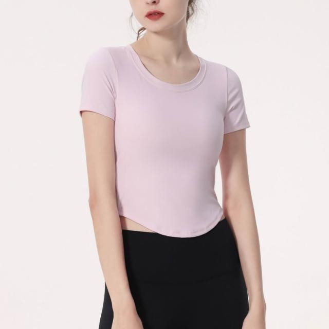 巴黎精品紐約精品 現貨+預購 女運動服短袖瑜珈服背心瑜伽服裸感親膚透氣速乾(圓領親膚透氣胸墊女上衣a1jo10)