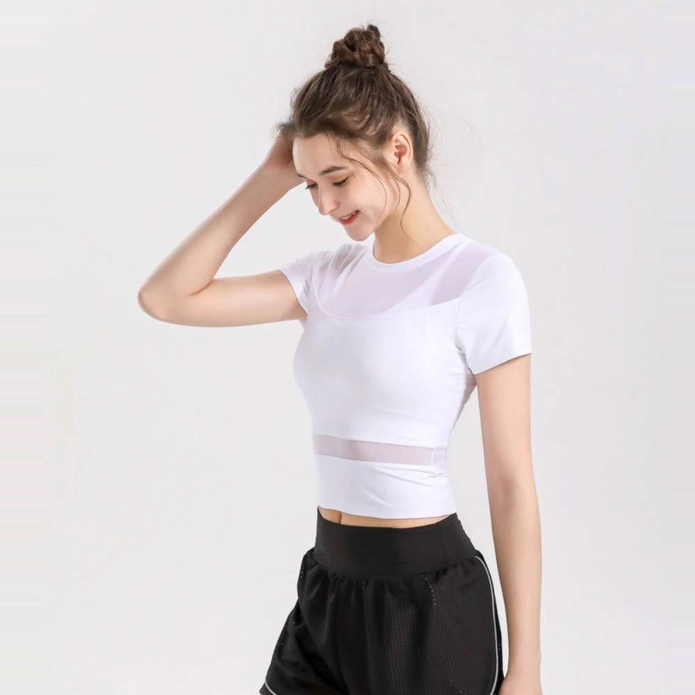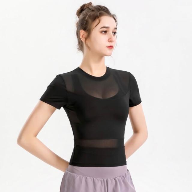 巴黎精品紐約精品 現貨+預購 女運動服短袖瑜珈服背心瑜伽服裸感親膚透氣速乾(露肚網紗緊身拼接女上衣a1jo13)