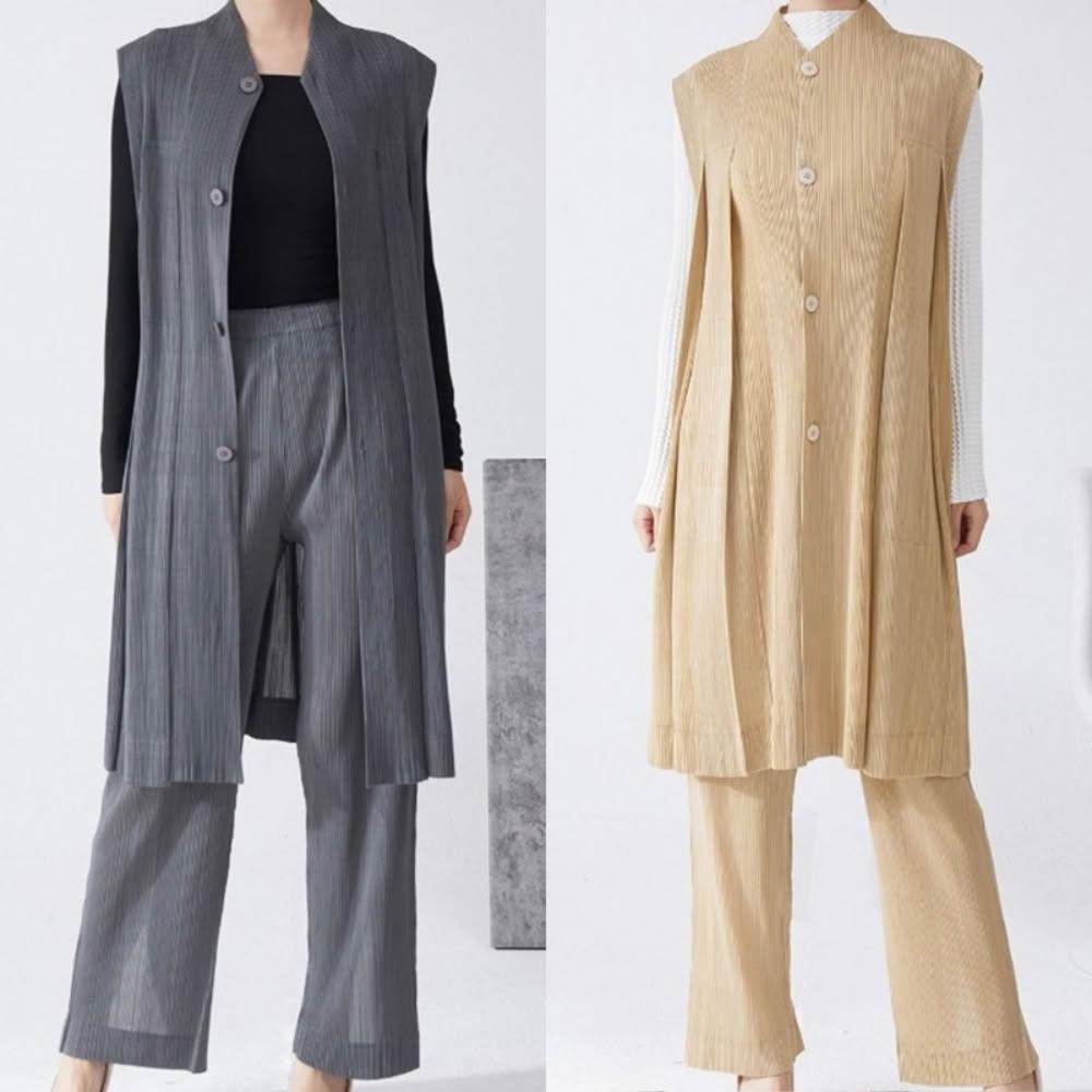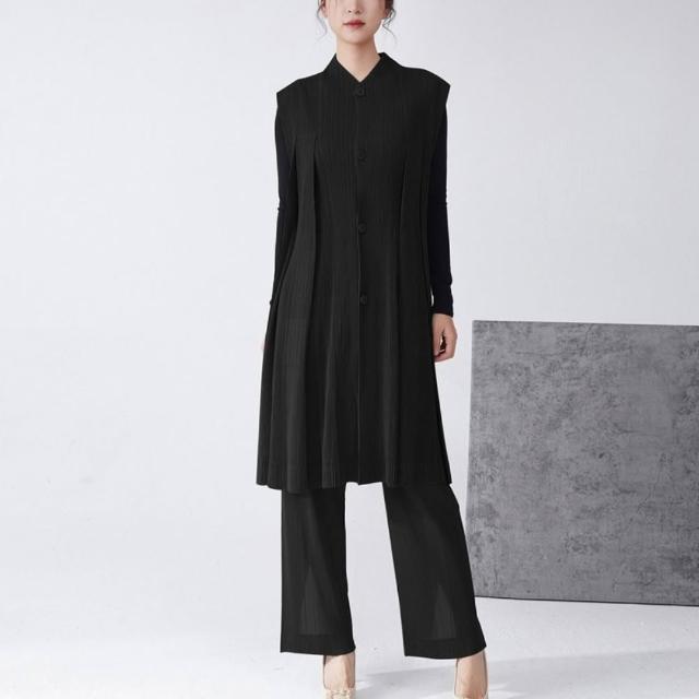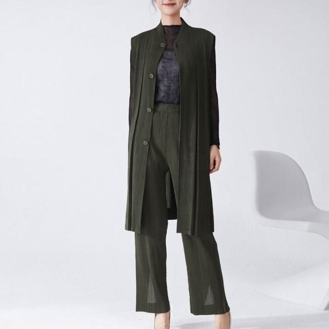 巴黎精品紐約精品 現貨+預購 三宅風皺褶衣服上衣套裝(長袖摺衣壓褶中長款馬甲外套直筒褲折衣女裝4色a1jq10)