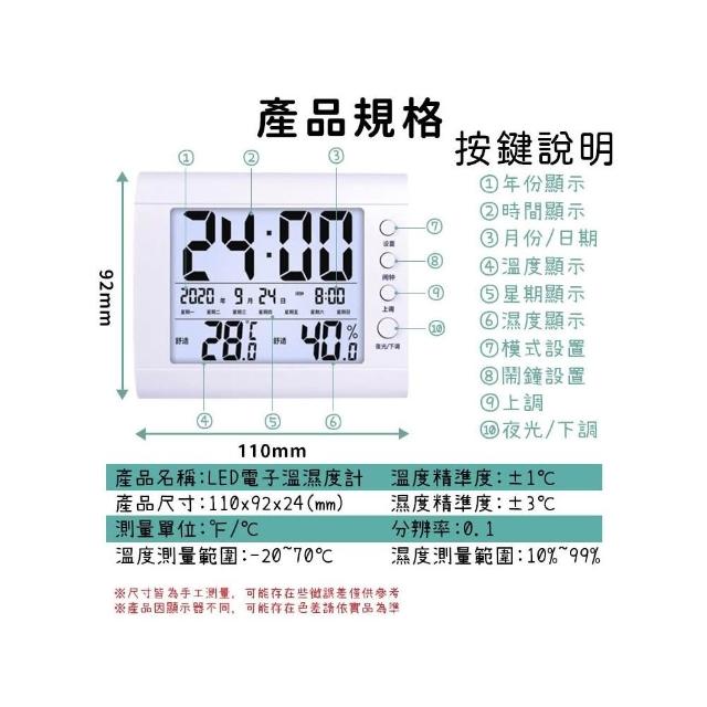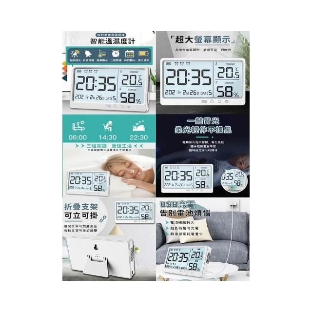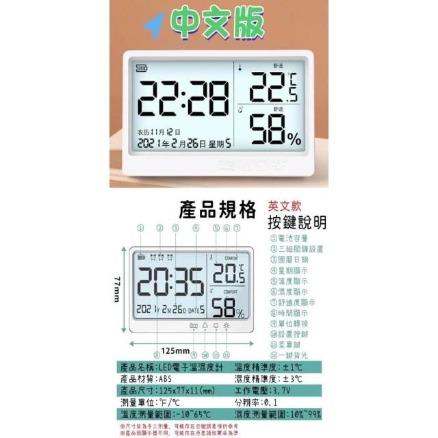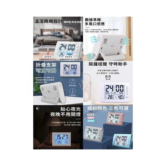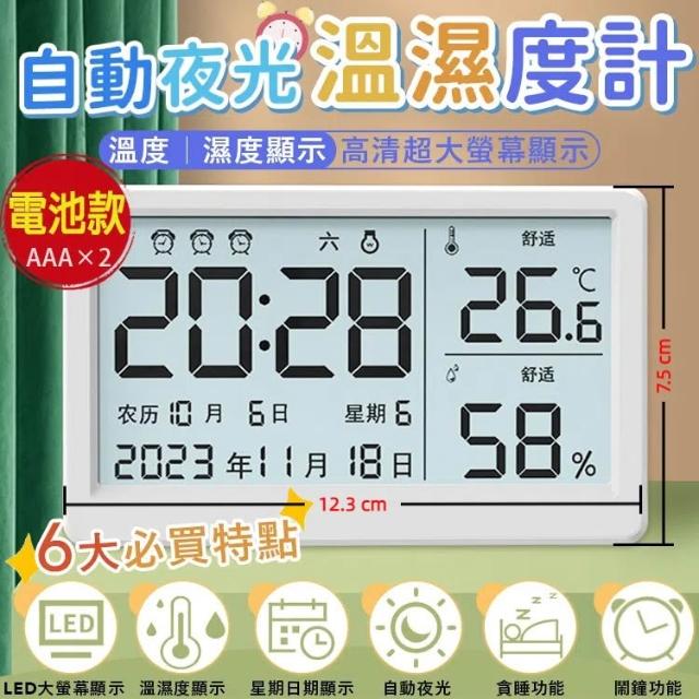 USB充電款/夜光款/電池款/雙供電/大尺寸/自動夜光 多功能電子溫濕度計 可掛立 日期 萬年曆 時鐘 鬧鐘 電子鐘