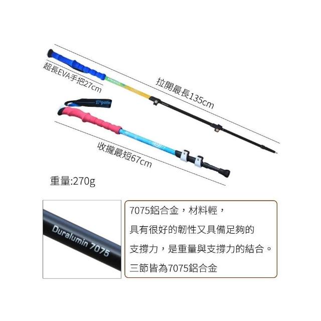 最新款 7075鋁合金外鎖式登山杖 超輕270g 爬山杖 健行杖 鋁合金登山杖 三節 登山手杖 拐杖 輔助杖 快扣登山杖