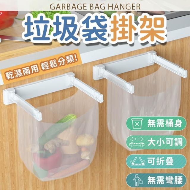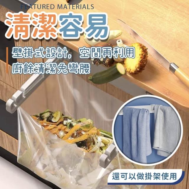 多用途 無痕免釘 垃圾袋掛架 可折疊 垃圾袋架 毛巾架 壁掛式垃圾架 背心垃圾袋 抹布架 雙開垃圾桶 9L大容量 掀蓋