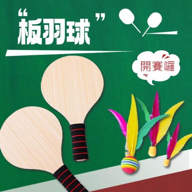 板羽球組 三毛球 板彈球 羽毛球拍 玩具 板球拍 彈力球 毽板球 板羽拍 毽子球 實木拍 橡木球拍 益智遊戲 戶外玩具
