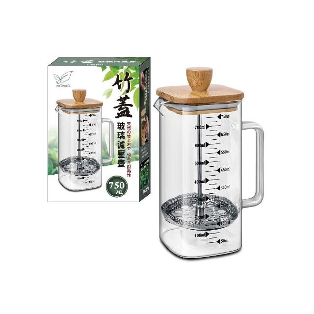 538購物網 竹蓋玻璃濾壓壺750ml 沖泡壺 泡茶壺