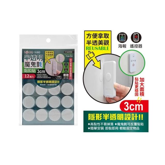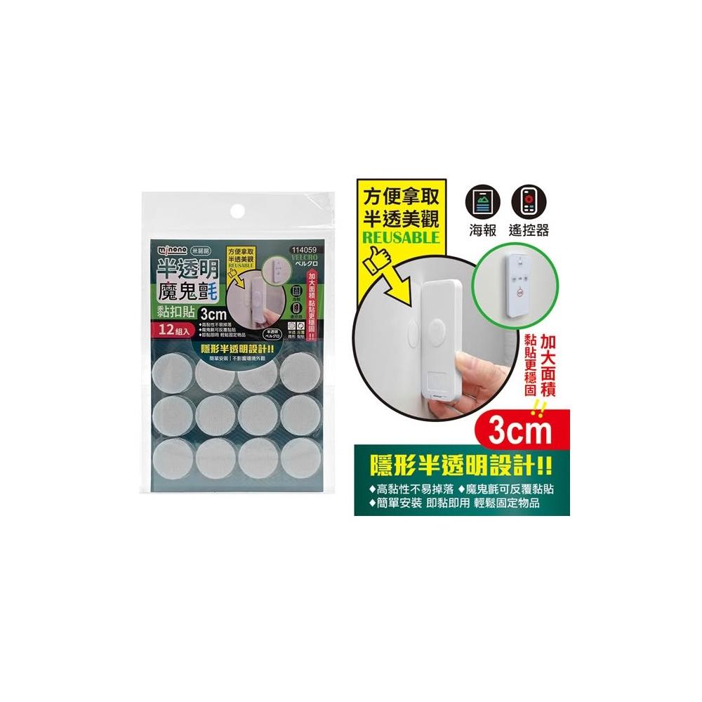 MINONO 米諾諾【538購物網】114059 半透明魔鬼氈黏扣貼3cm 12組/包