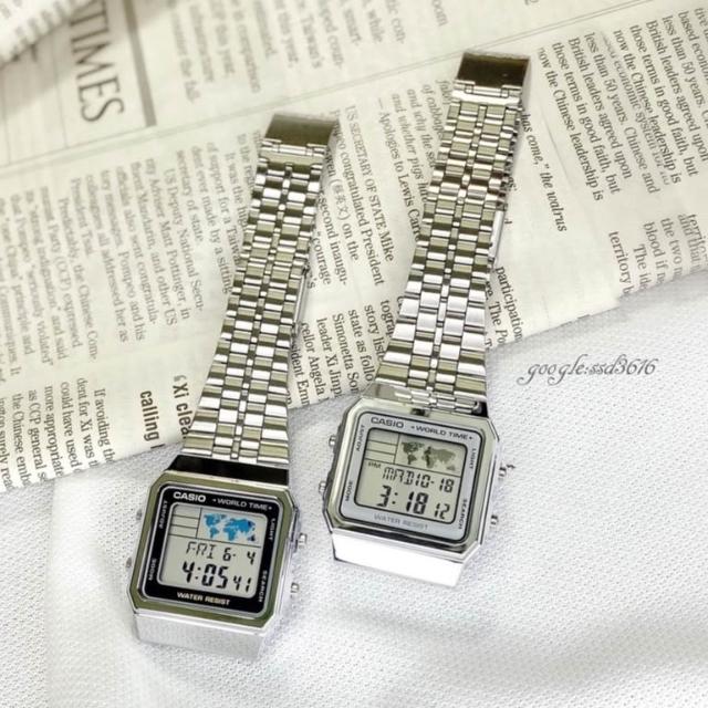 CASIO 卡西歐CASIO經典復古風格 方型電子錶 世界時間地圖 中性款日系 雜誌首推 保證正品 公司貨保固卡 ↘超低價 A500WA