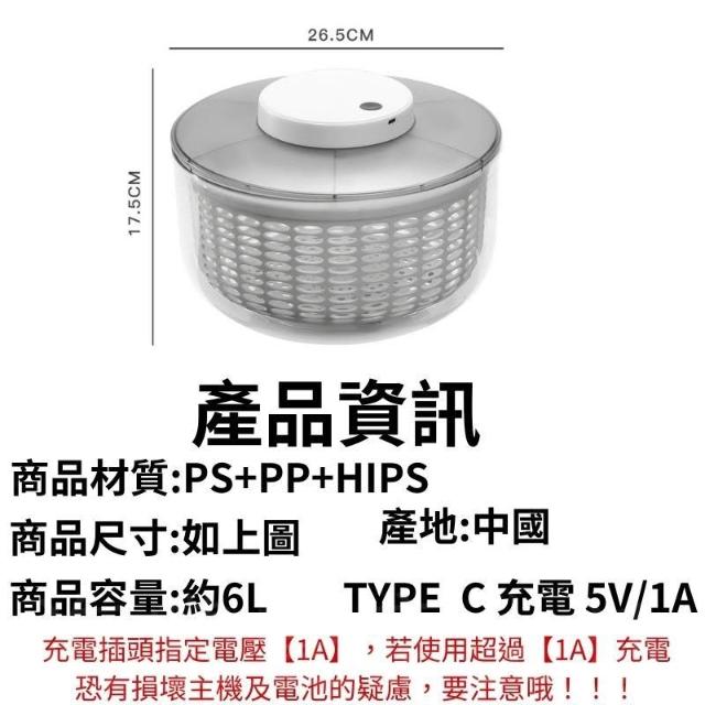{電動} 蔬果脫水器 蔬菜脫水器 瀝水籃 6L 洗菜籃 洗菜瀝水盆 洗菜 電動脫水機 蔬菜脫水機