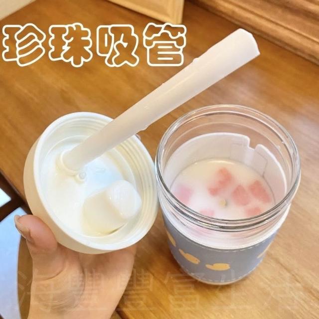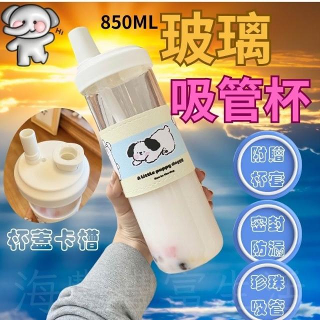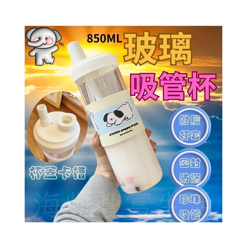 {密封防漏} 玻璃吸管杯 居家生活 大象杯 吸管杯 耐熱玻璃杯 珍奶杯 珍奶環保杯 贈杯套 850ML 手搖杯