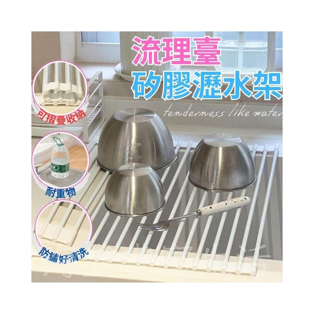 {台北出貨} 矽膠折疊瀝水架 廚房水槽架 隔熱置物架 蔬菜碗碟收納架 摺疊瀝水架 收納架 置物架 碗碟架 水槽 碗盤