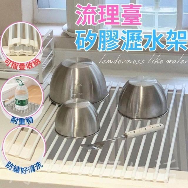 {台北出貨} 矽膠折疊瀝水架 廚房水槽架 隔熱置物架 蔬菜碗碟收納架 摺疊瀝水架 收納架 置物架 碗碟架 水槽 碗盤