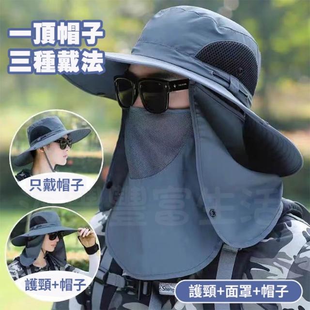 {台北出貨} 遮陽帽 漁夫帽 防曬帽 防曬遮陽帽 灰色 防曬漁夫帽 釣魚帽 登山帽 遮陽漁夫帽 防曬面罩 玉蘭花