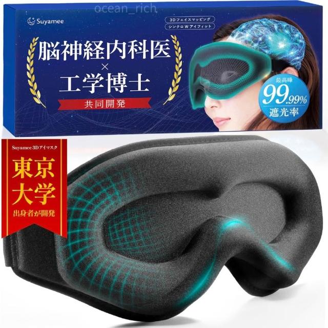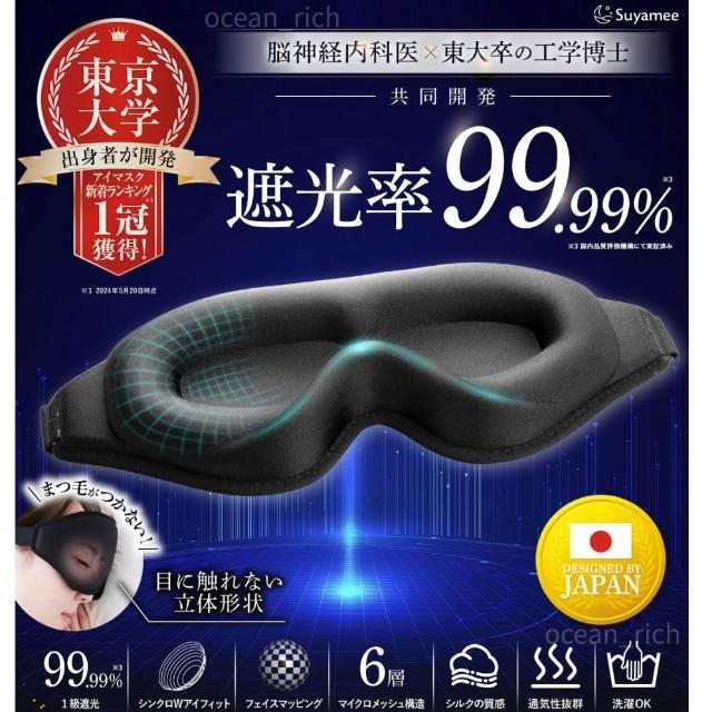 日本原裝進口 黑洞3D眼罩 遮光99.9% 舒適透氣午睡旅行飛行睡眠改善 敏感肌鬆緊帶 Suyamee